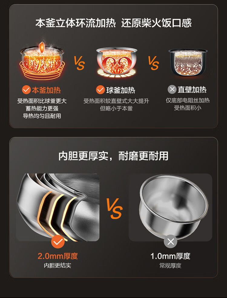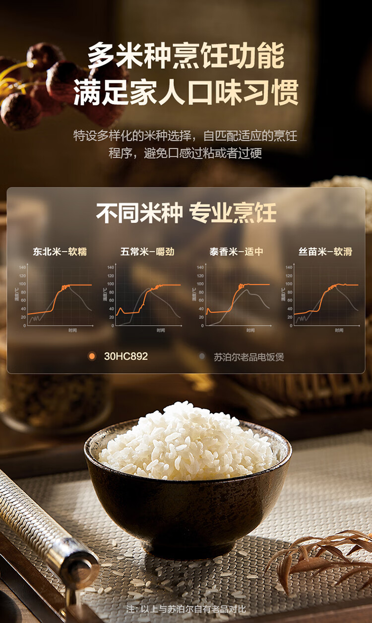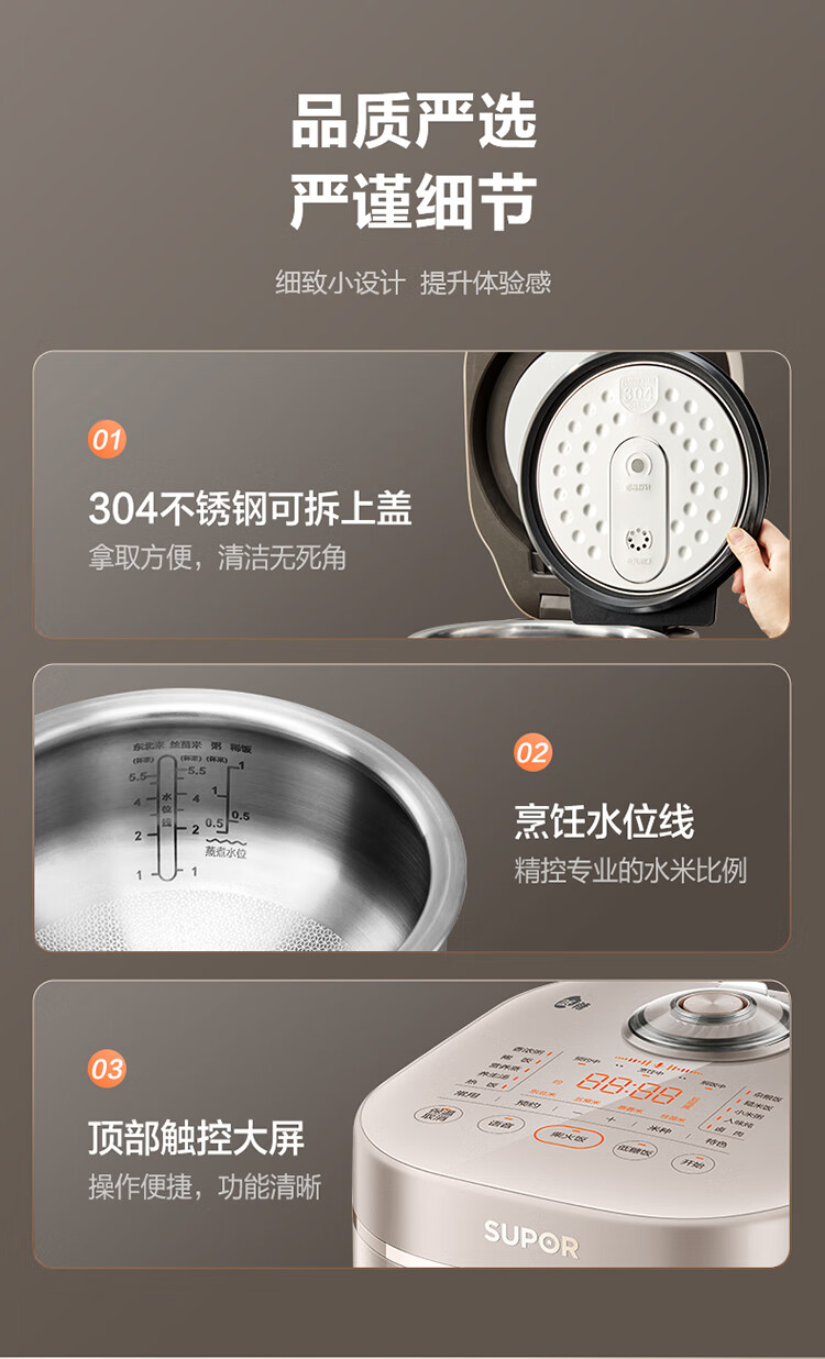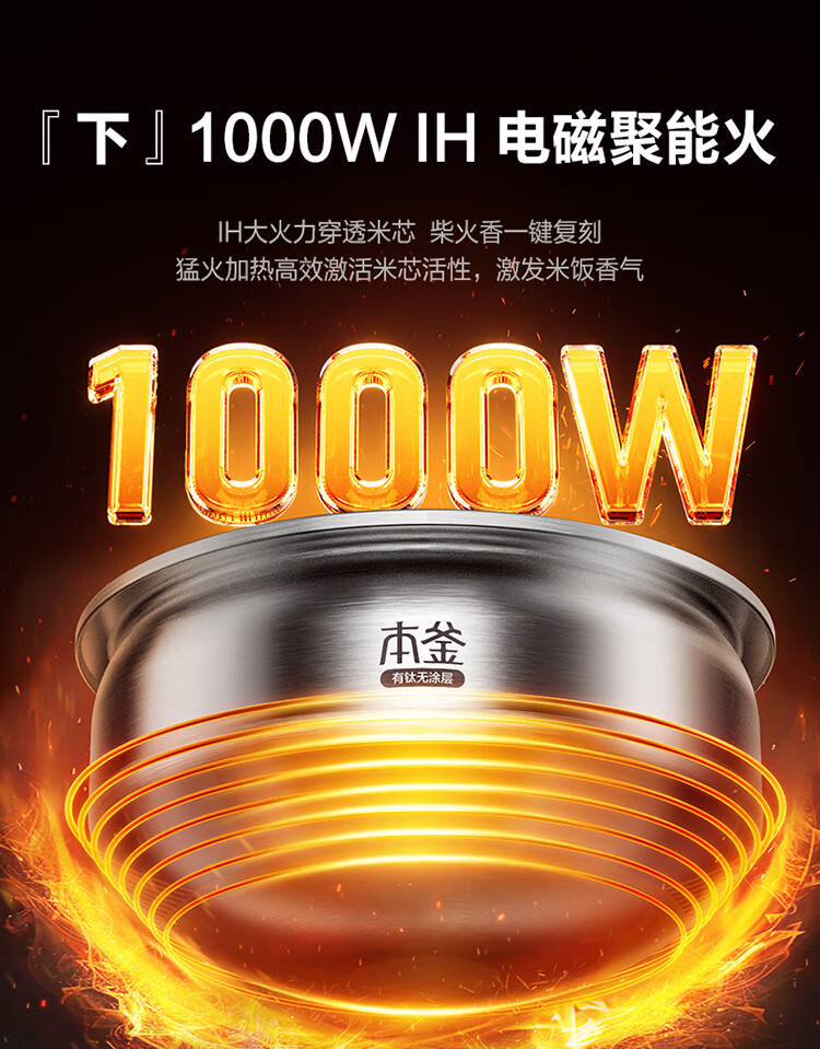 苏泊尔(SUPOR)低糖电饭煲3L家用IH电磁加热柴火饭本釜内胆电饭锅智能预约沥米饭米汤分离 SF30HC92