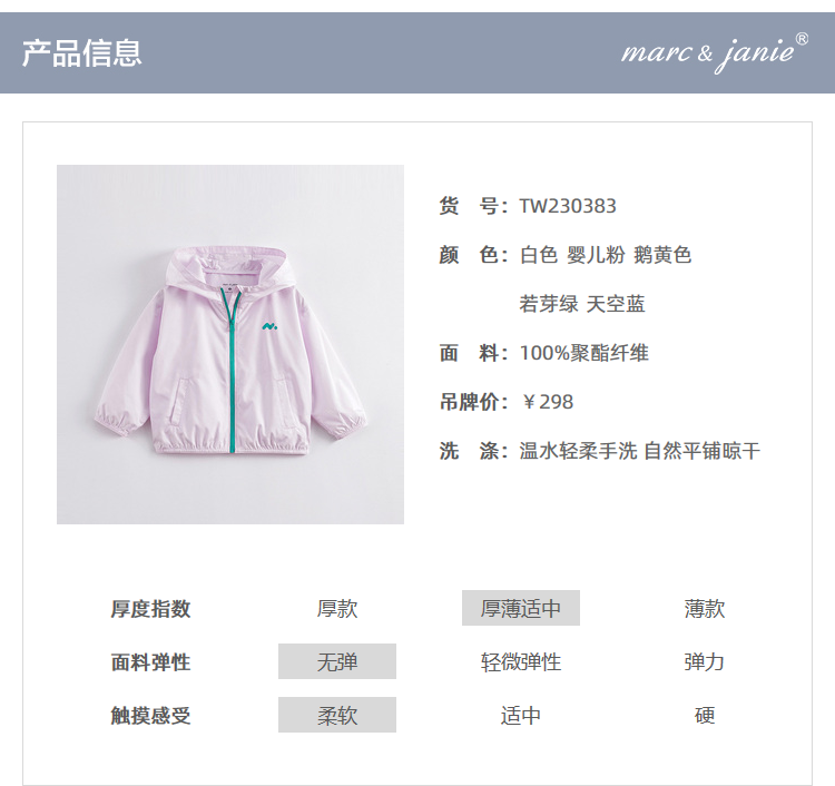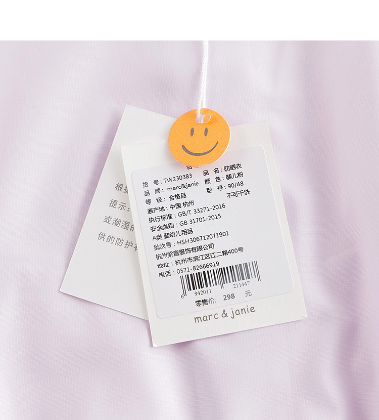 【真正防紫外线】马克珍妮春夏新品 男女童透气防晒衣230383/250012