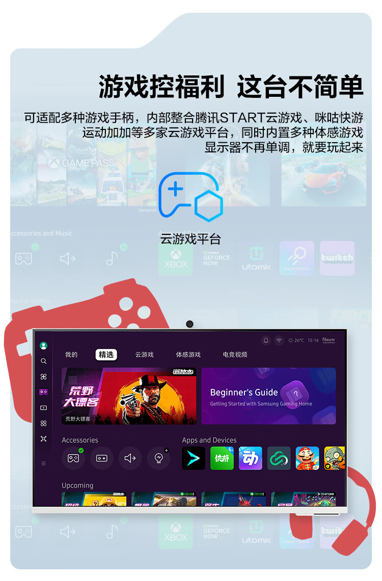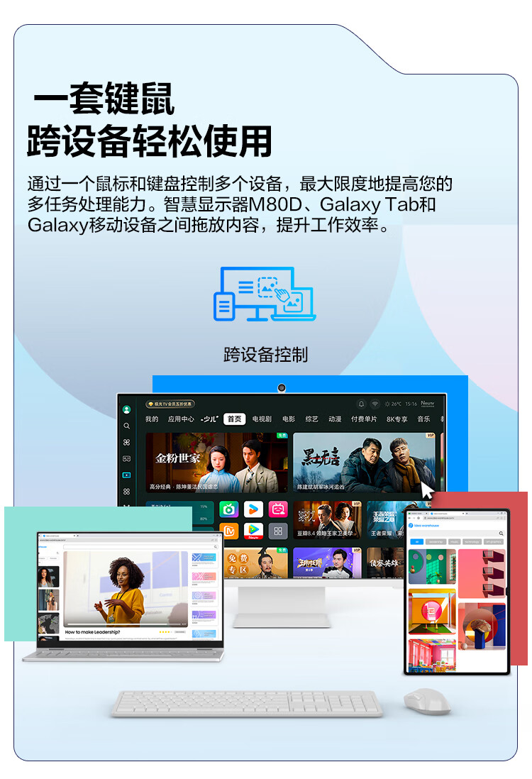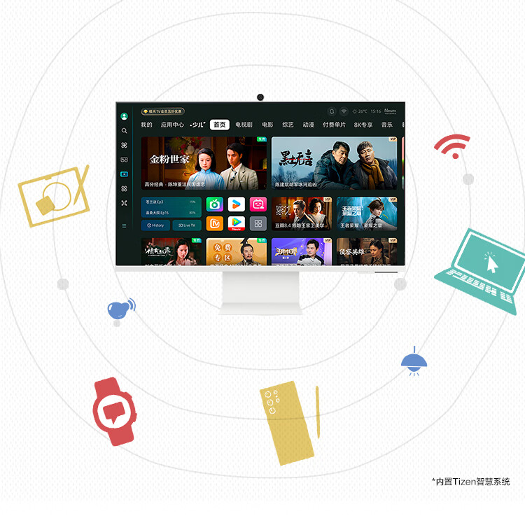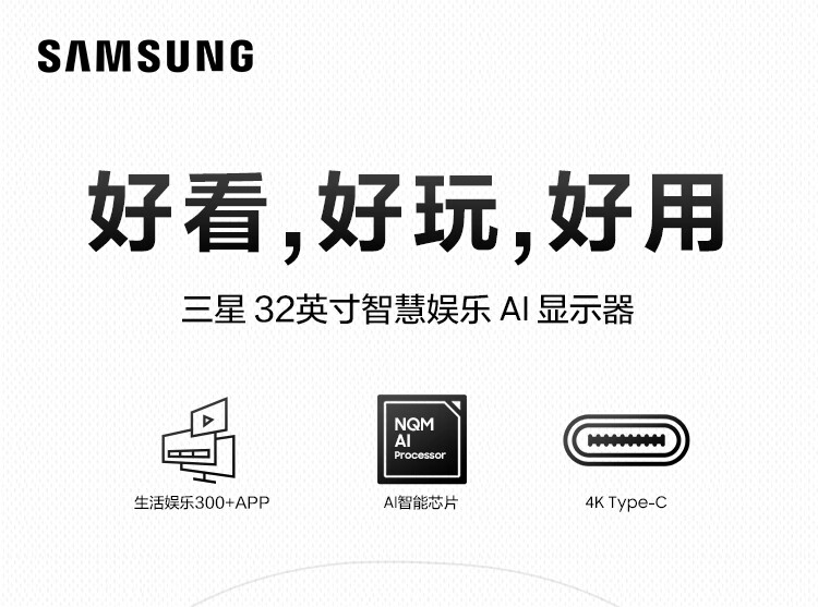 三星(SAMSUNG)32英寸 4K Type-C 65w 蓝牙连接 Tizen系统 智慧显示器LS32DM803UCXXF