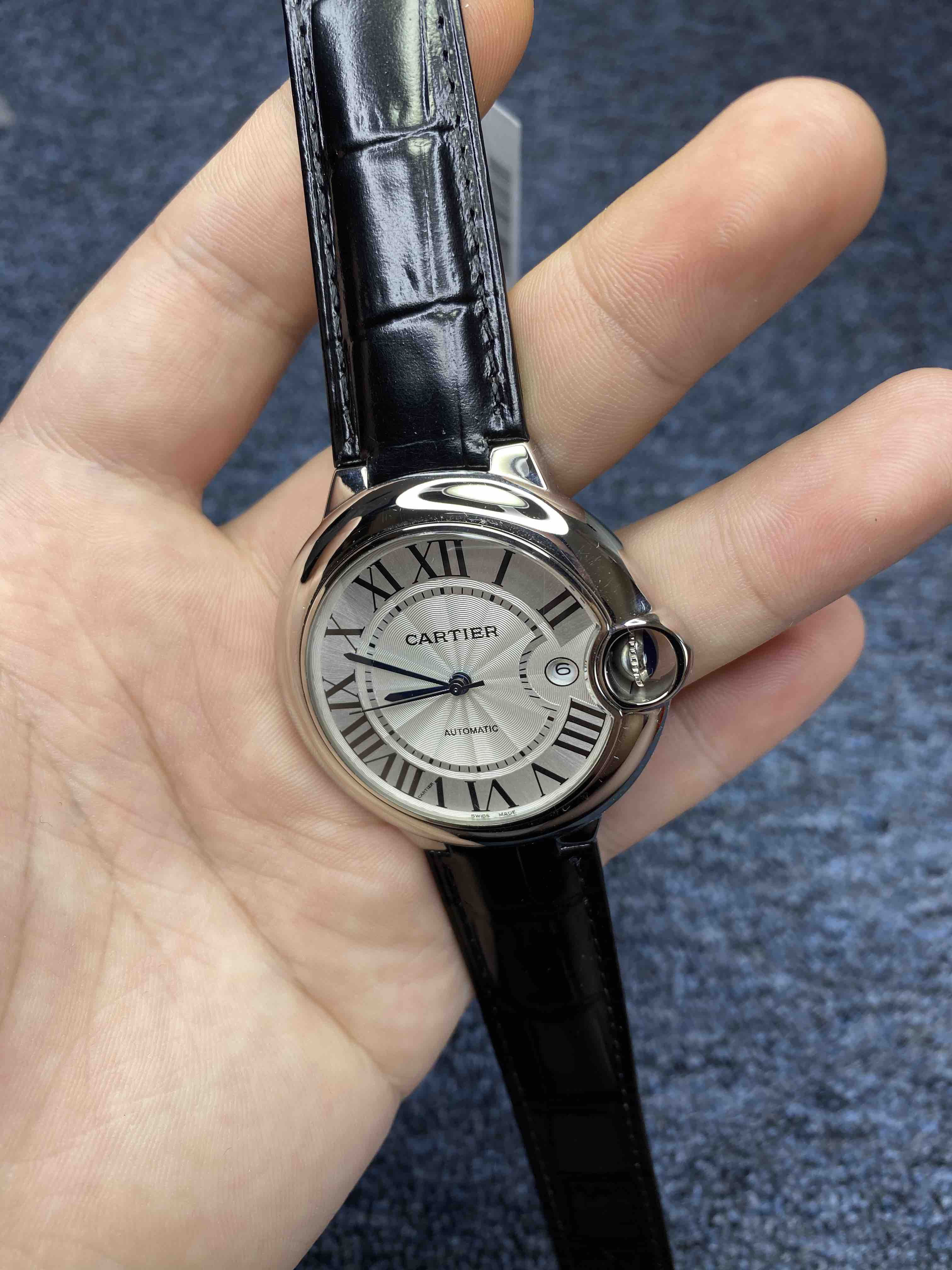 限时特价 卡地亚蓝气球系列 男款大号42mm 316L精钢表壳,鱼眼蓝宝石镜面 搭载定制全自动机械机芯 淬火蓝钢针,意大利小牛皮表带 原装折叠扣