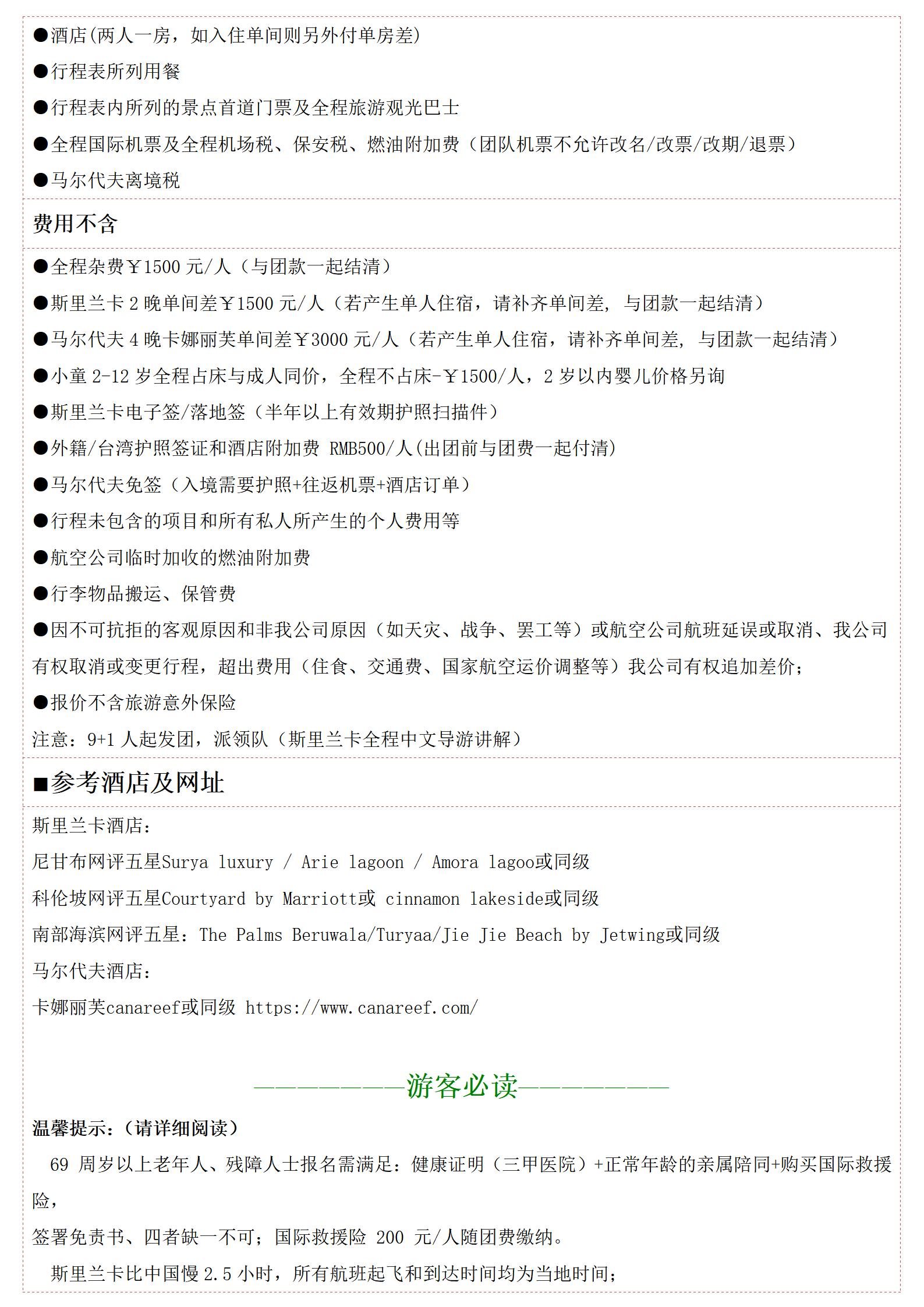 【双国之旅】 斯里兰卡&马尔代夫"浪漫海滨之旅 卡娜丽芙8天6晚