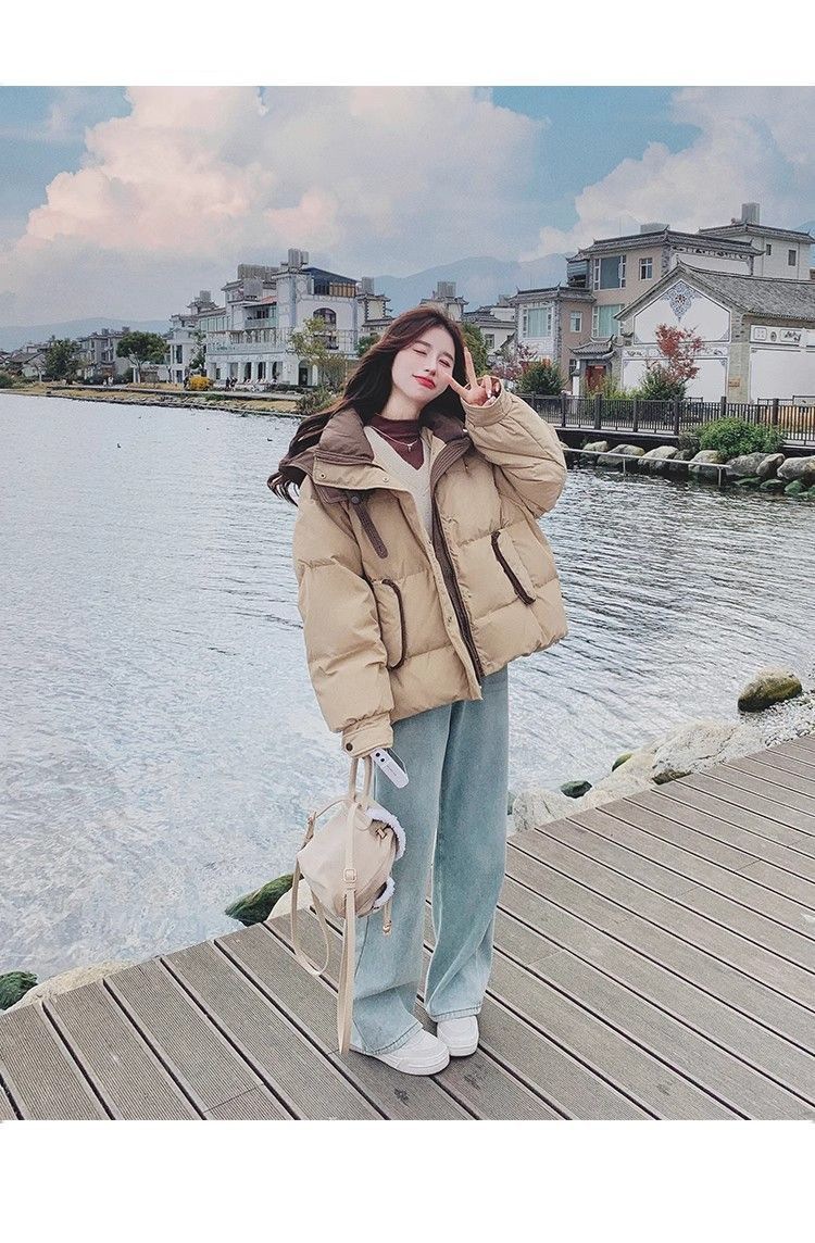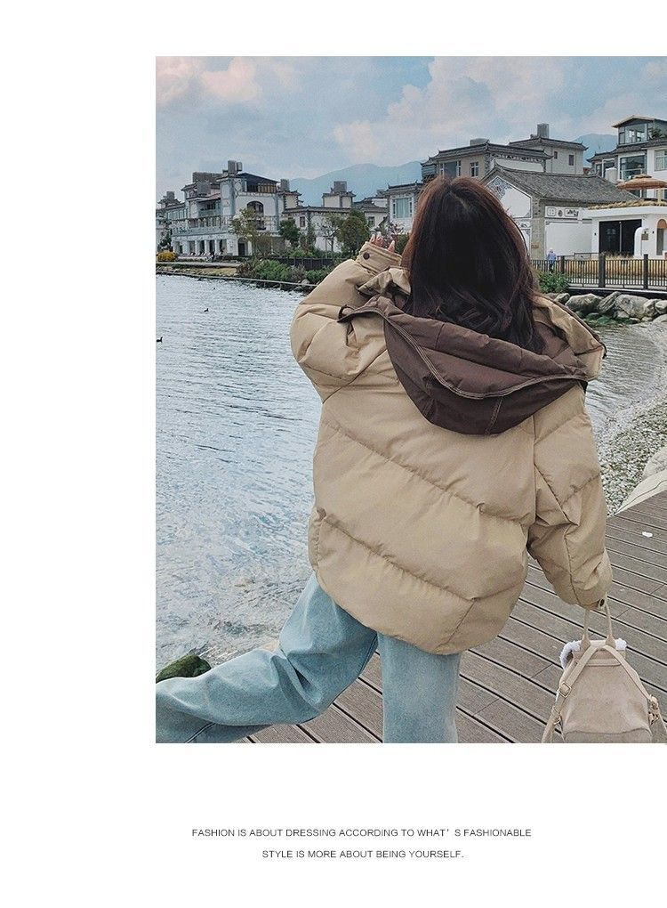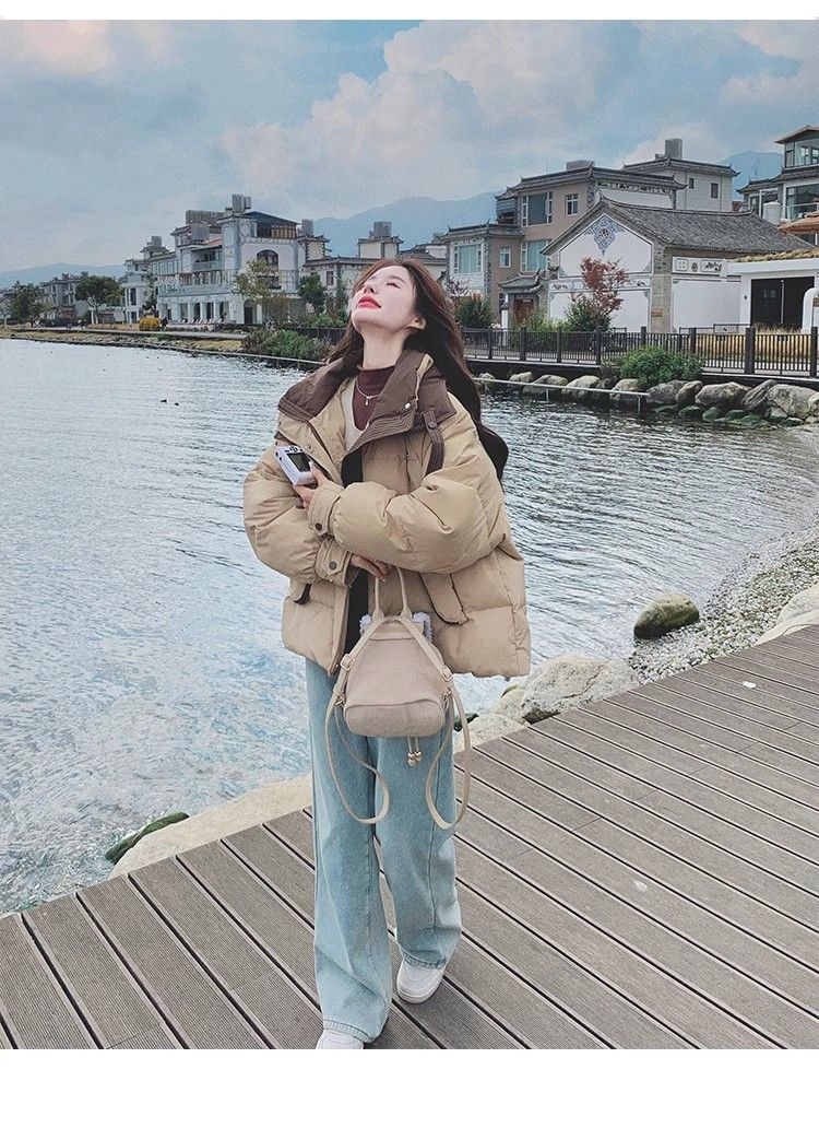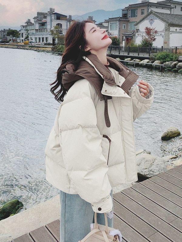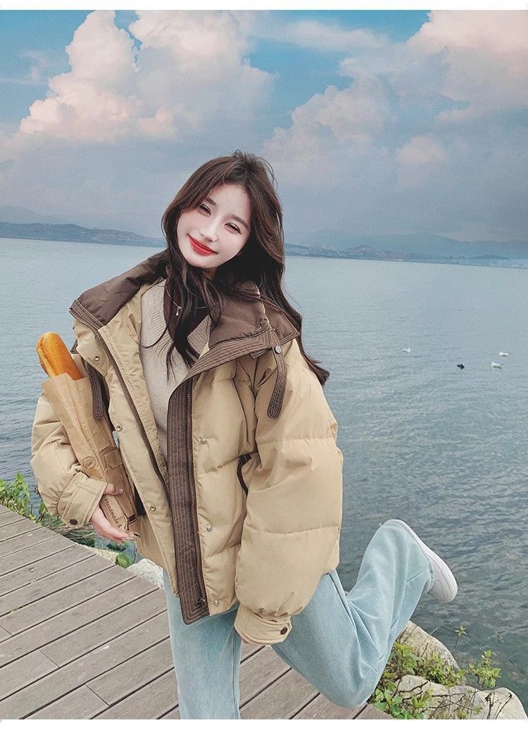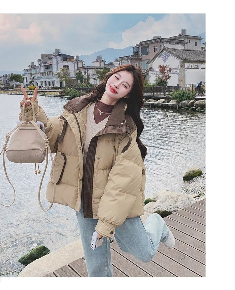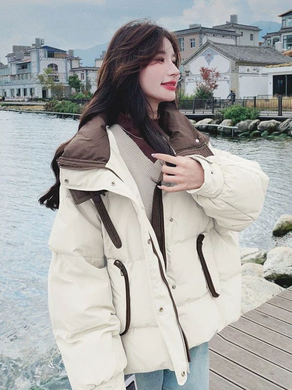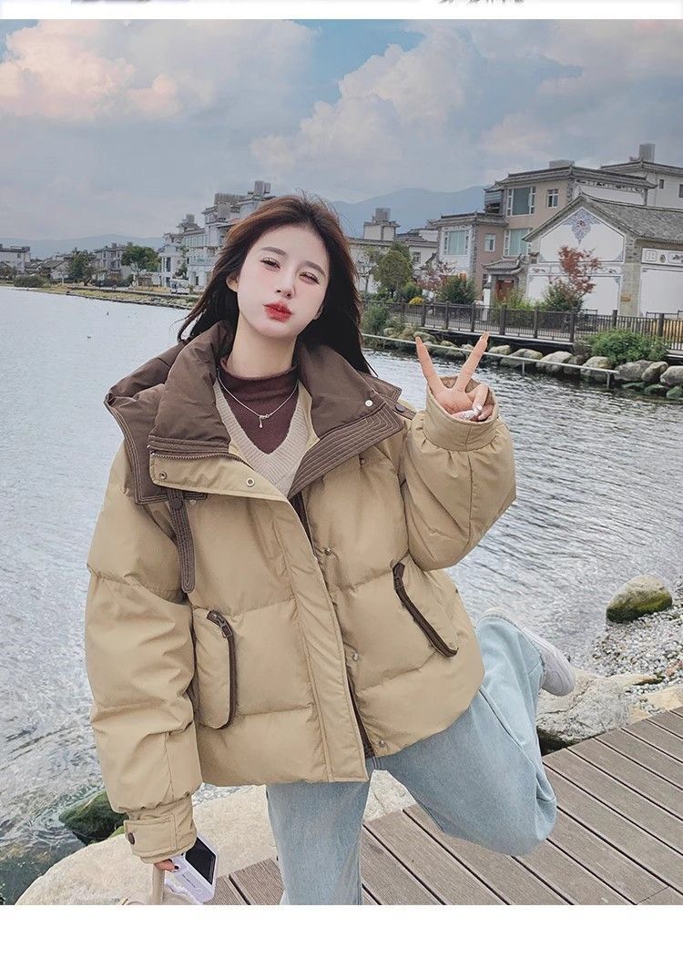 短款撞色棉服女冬季新款小个子时尚加厚棉衣棉袄面包服外套