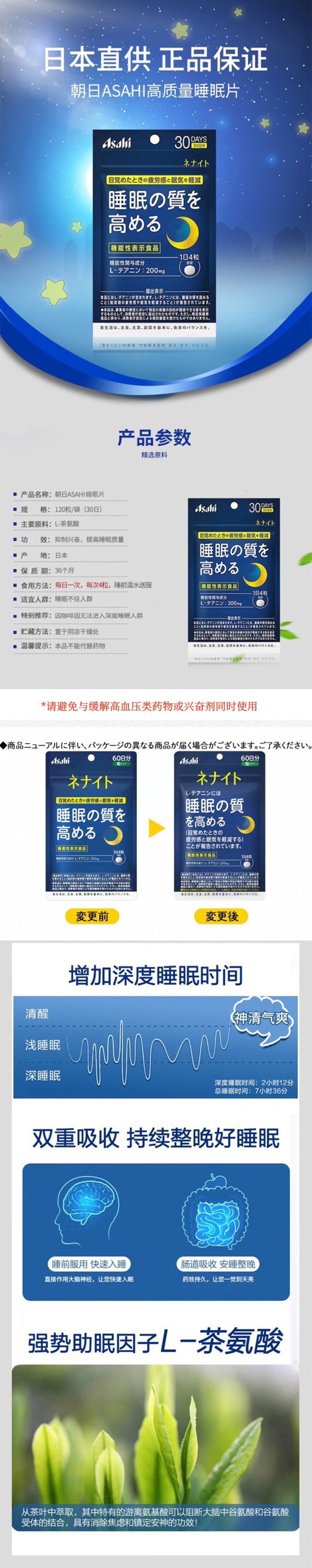 【保税仓】ASAHI朝日NENAITO L茶氨基酸睡眠片120粒/包(片装)(有效期2027年2月)