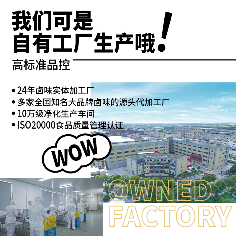 🔺我们说的都是事实,不吹不擂,好品质经得起挑剔的嘴验!因为我们是源头自有工厂,高于行业标准,品质更有保证!!!我们是多家国内知名大品牌卤味的源头代加工厂,已经经过市场广泛的认可,品质信得过,价格还实惠。
