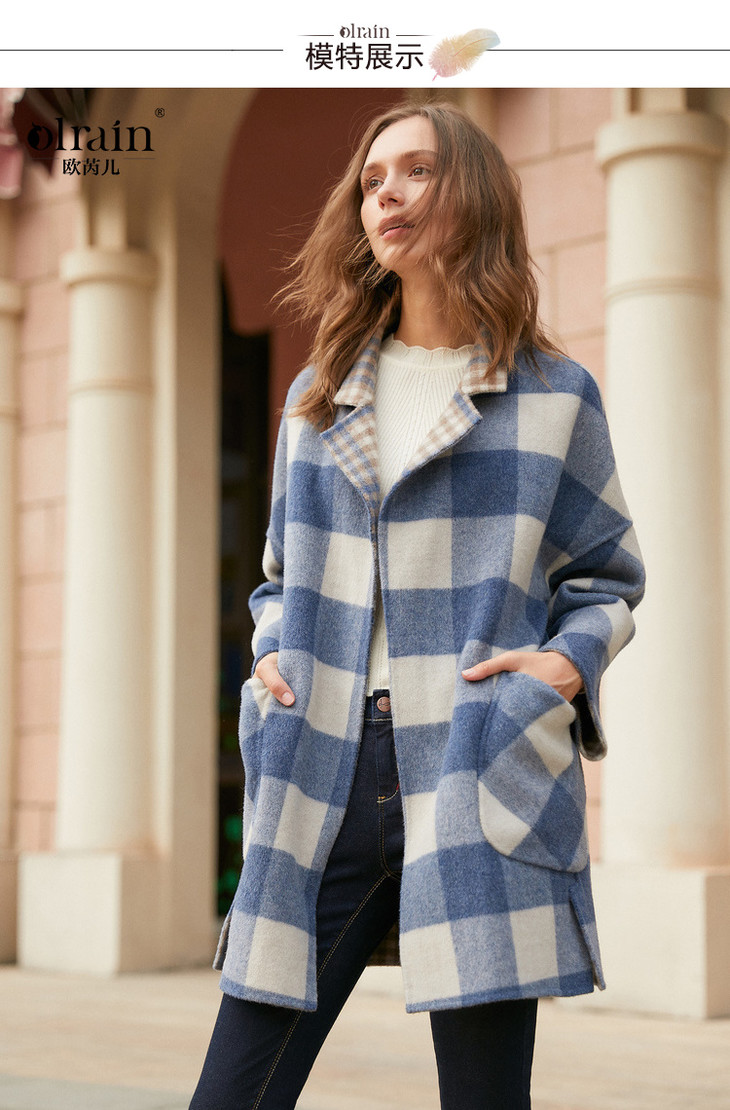 欧芮儿冬装2021新款西装领毛呢大衣百搭呢子外套女加厚保暖
