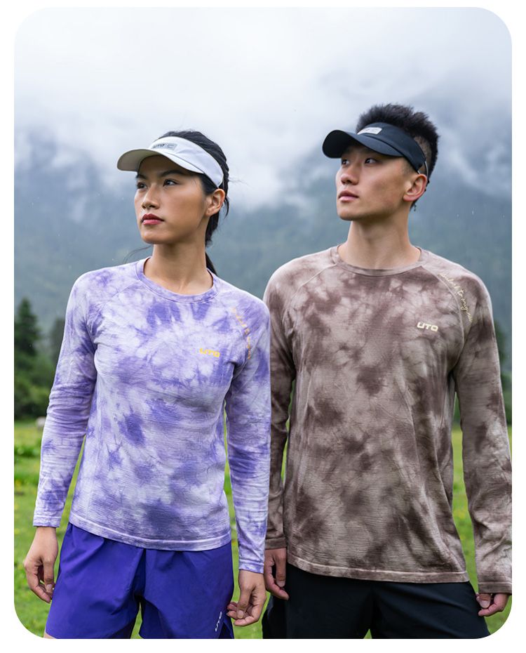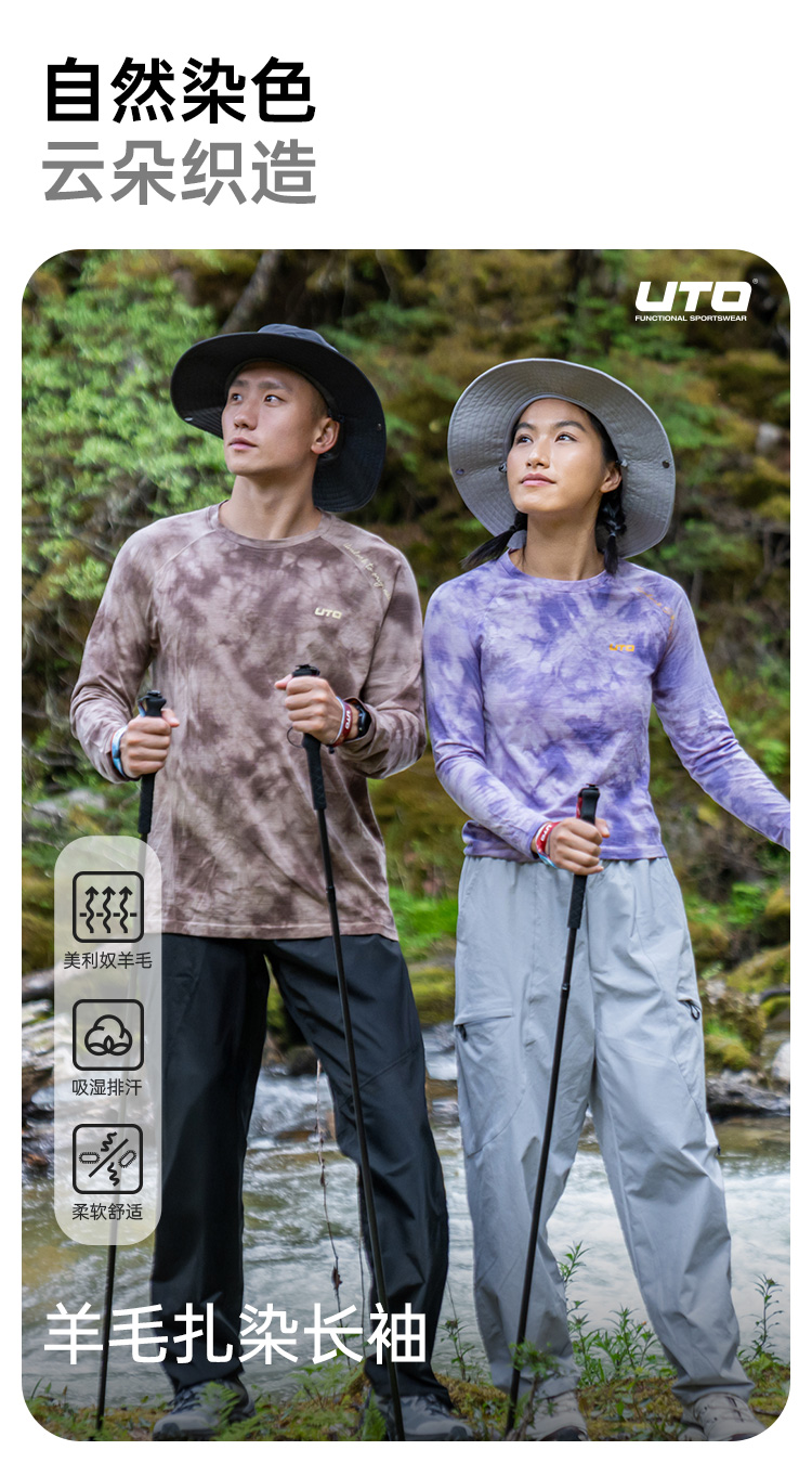 UTO/悠途羊毛扎染速干长袖男女春夏户外徒步运动T恤休闲舒适个性