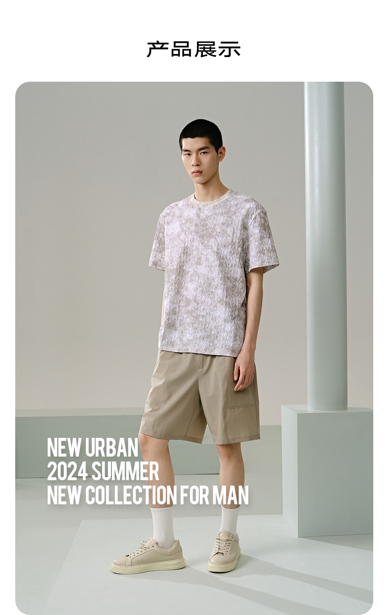 GXG男装 微皱休闲短裤直筒运动短裤薄 24年夏G24X222009