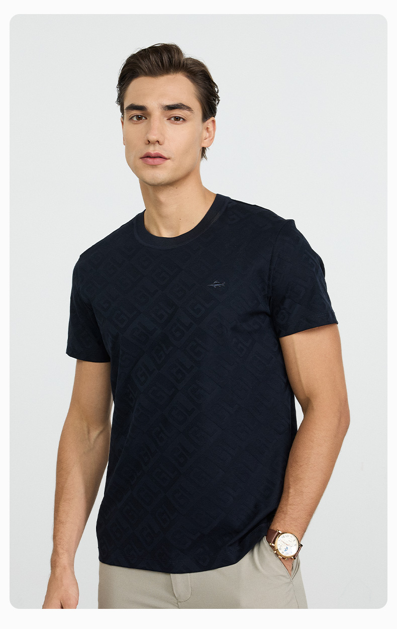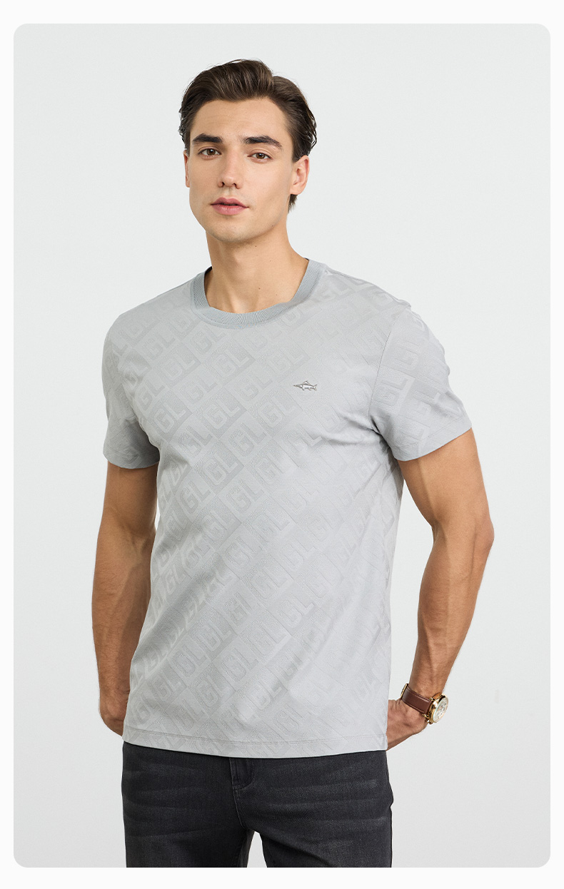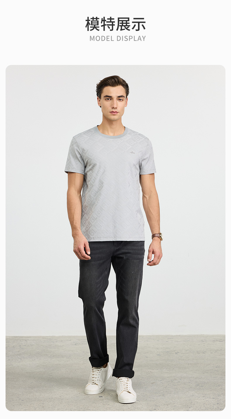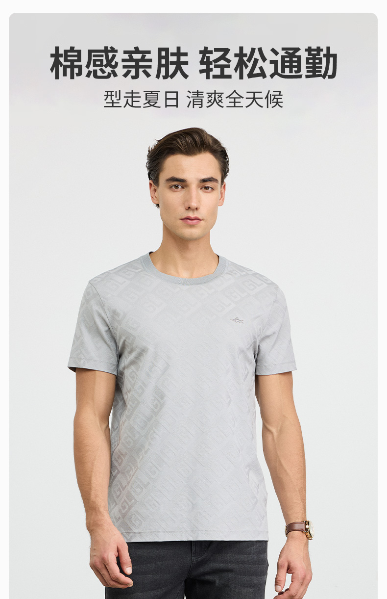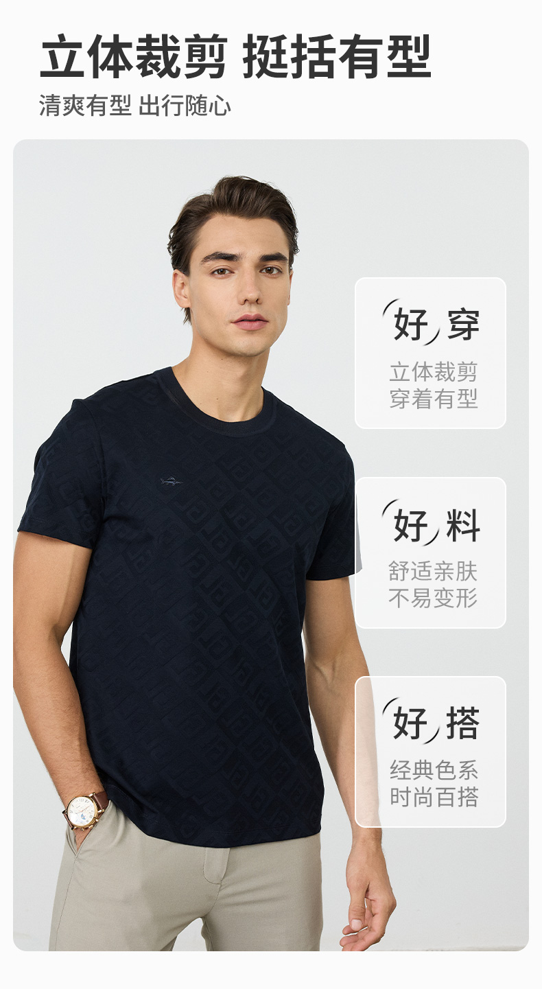【棉混纺】德鲨短袖圆领上衣T恤男2026夏新款百搭上衣弹力打底衫