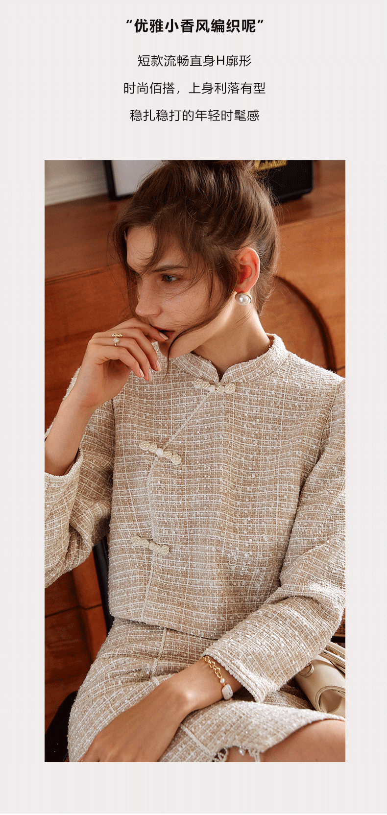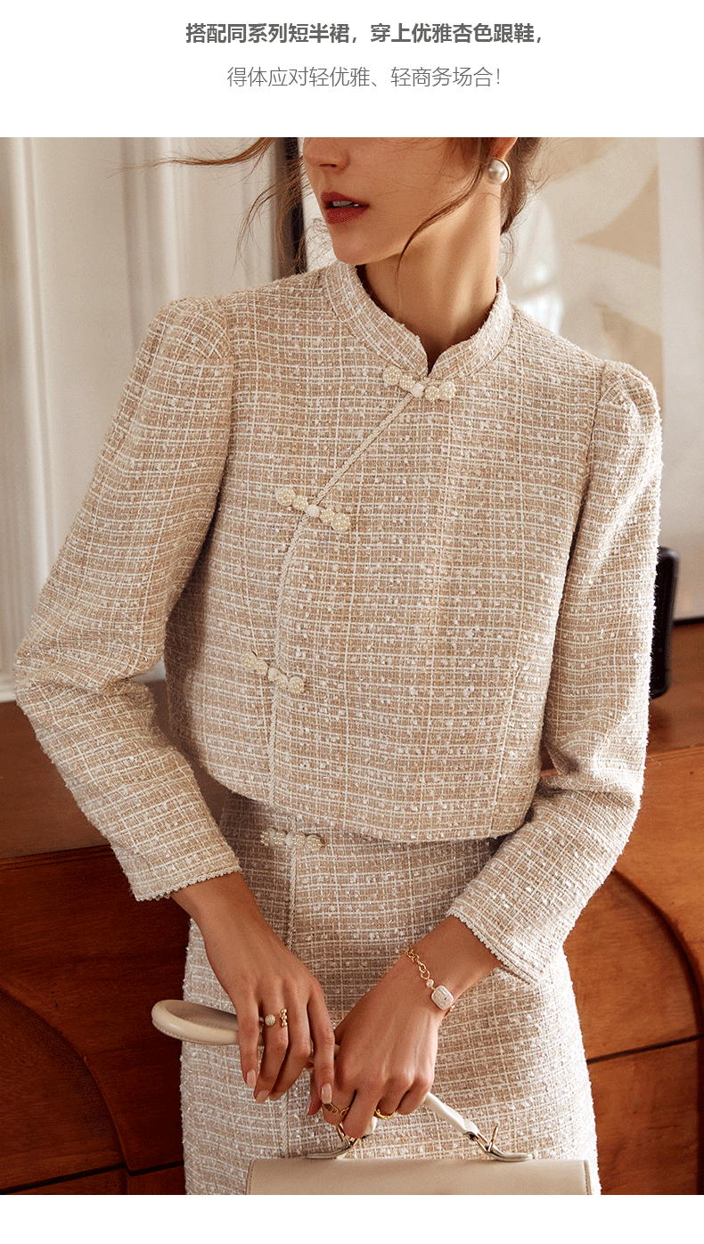 欧芮儿小香风短外套女新款2021宽松显瘦设计感法式休闲上衣