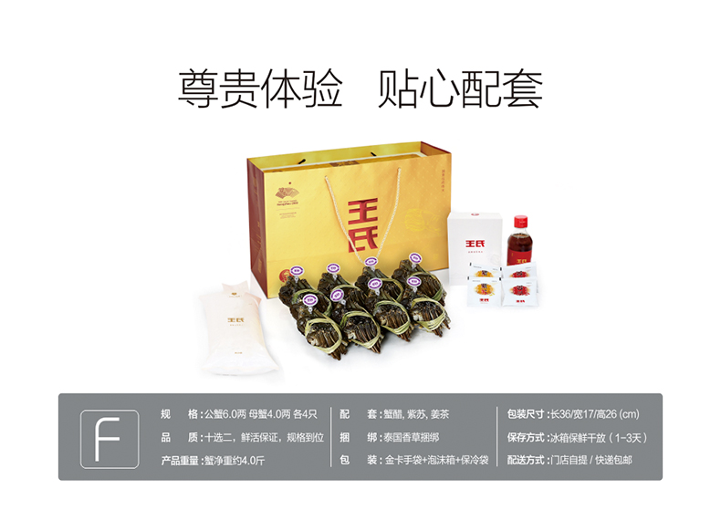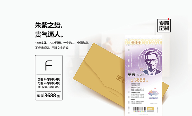 【礼券】王氏大闸蟹礼卡6.0公 4.0母中秋提货券螃蟹券8只装4688型