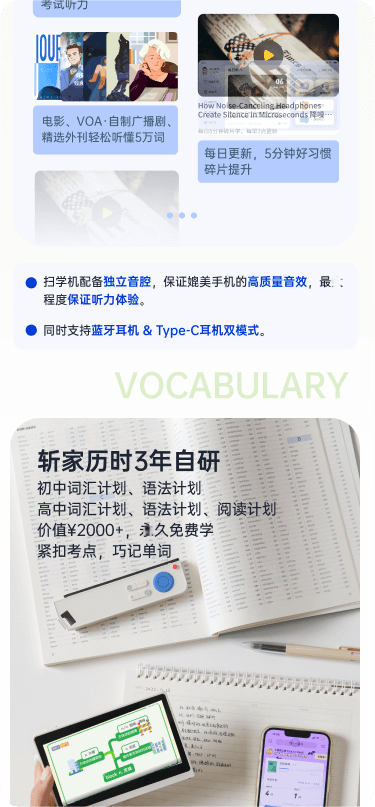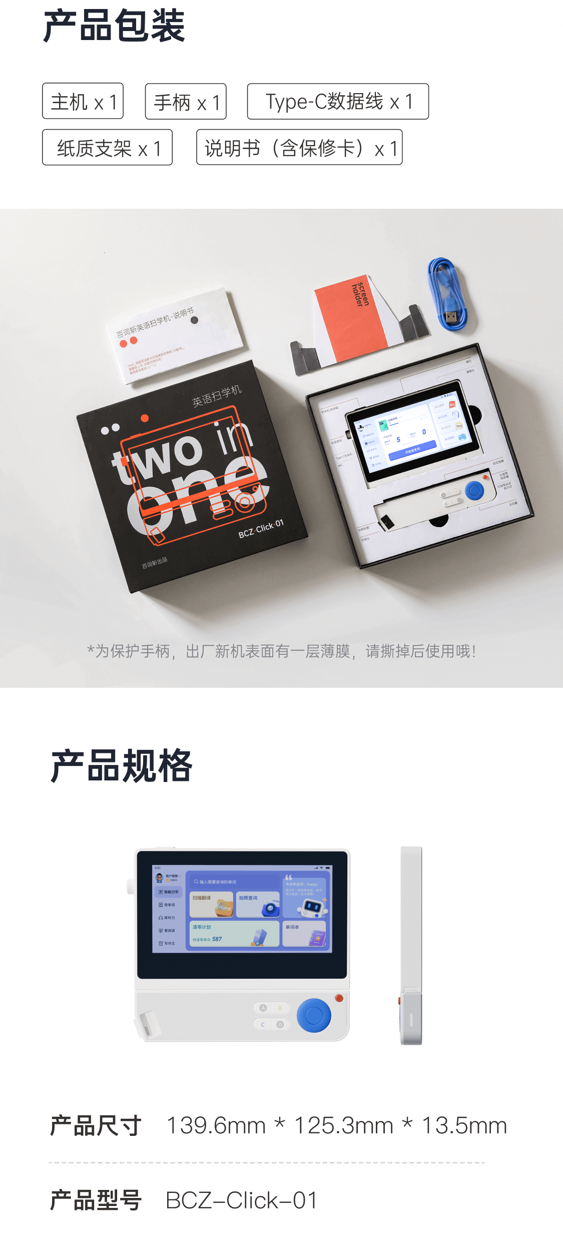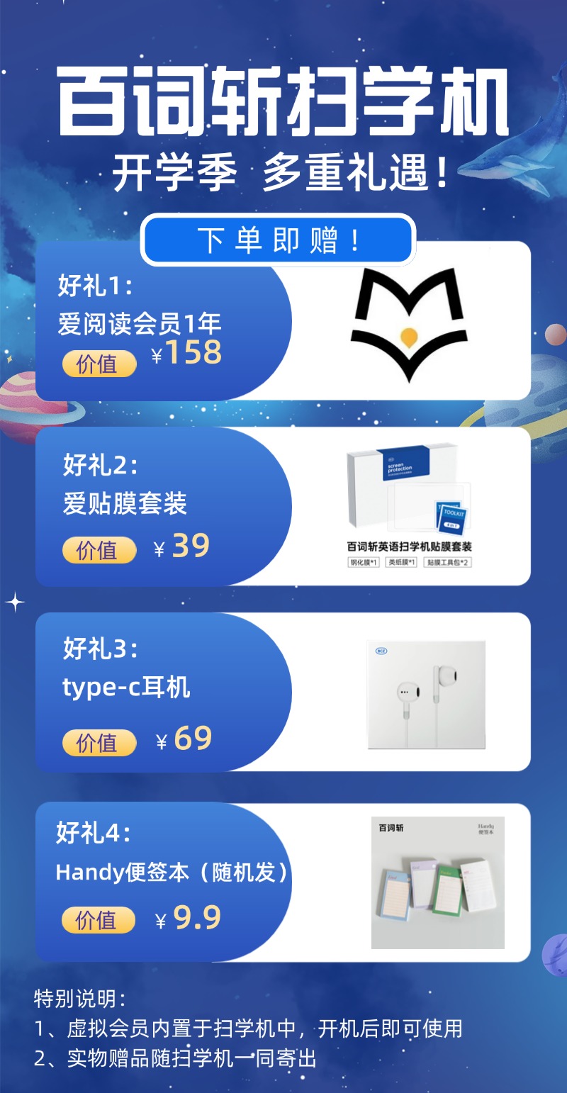 百词斩单词机扫学机 背单词神器词典笔学习机2in1真人发音小初高英语便携电子词典笔扫描笔翻译护眼大屏超多赠品(比官方还要多哦)