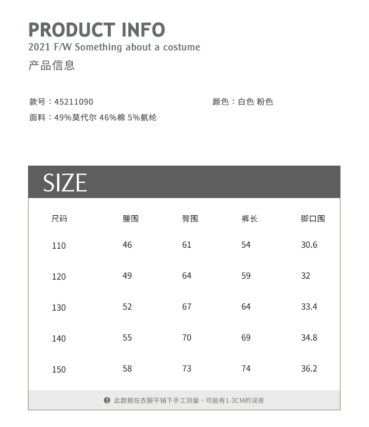 | 裤门襟: 皮筋腰带 | 货号: 45211090 |