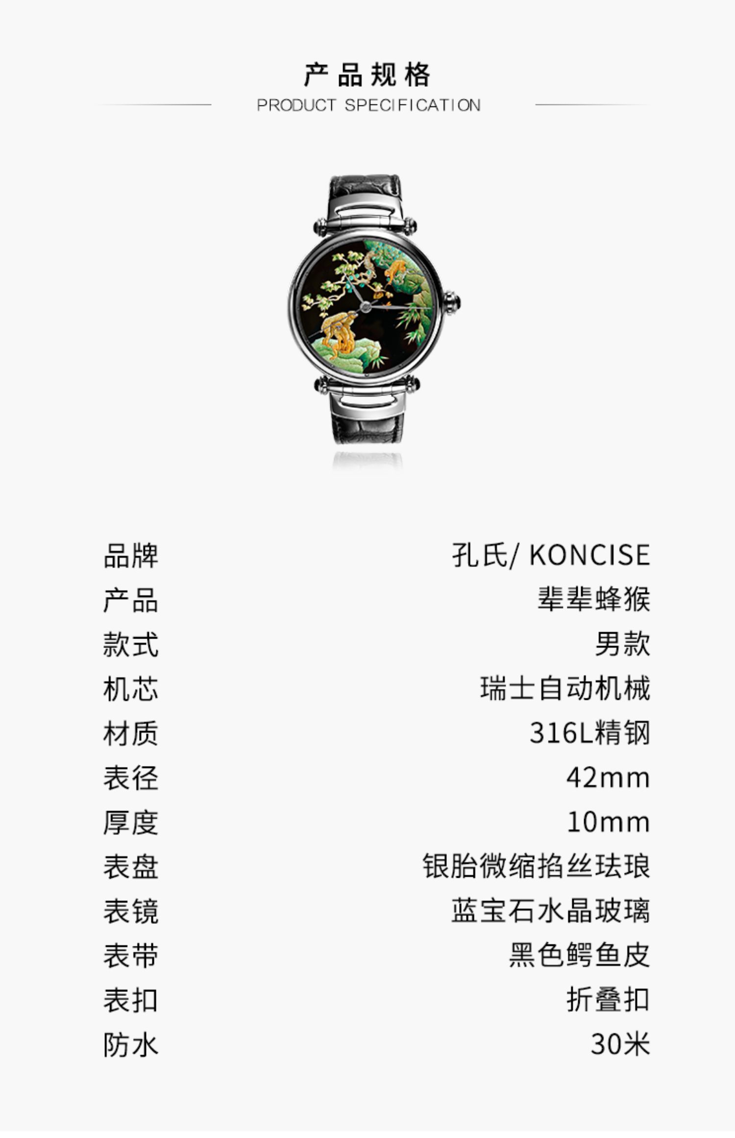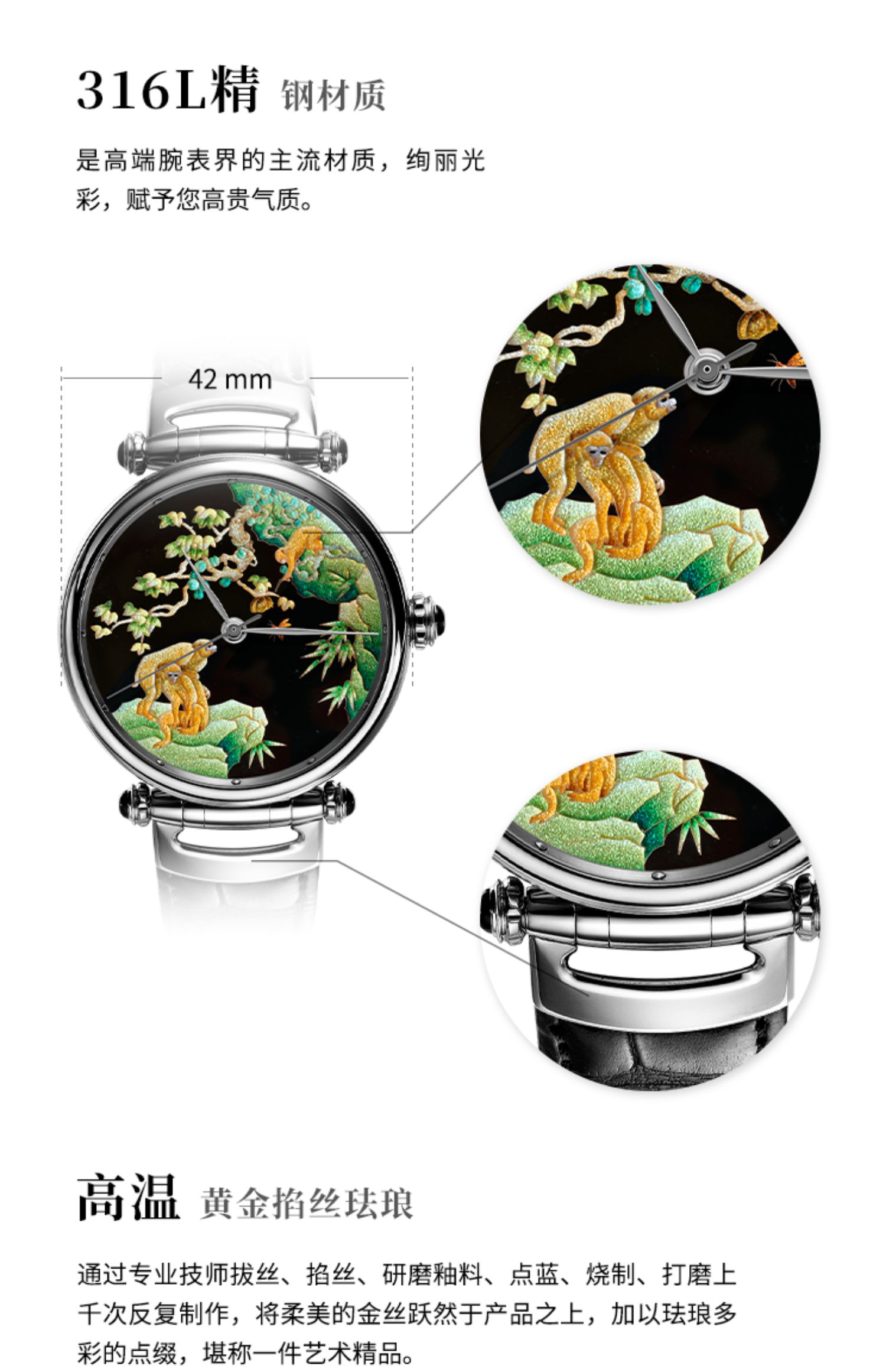 KONCISE孔氏珐琅 辈辈蜂猴 掐丝珐琅腕表