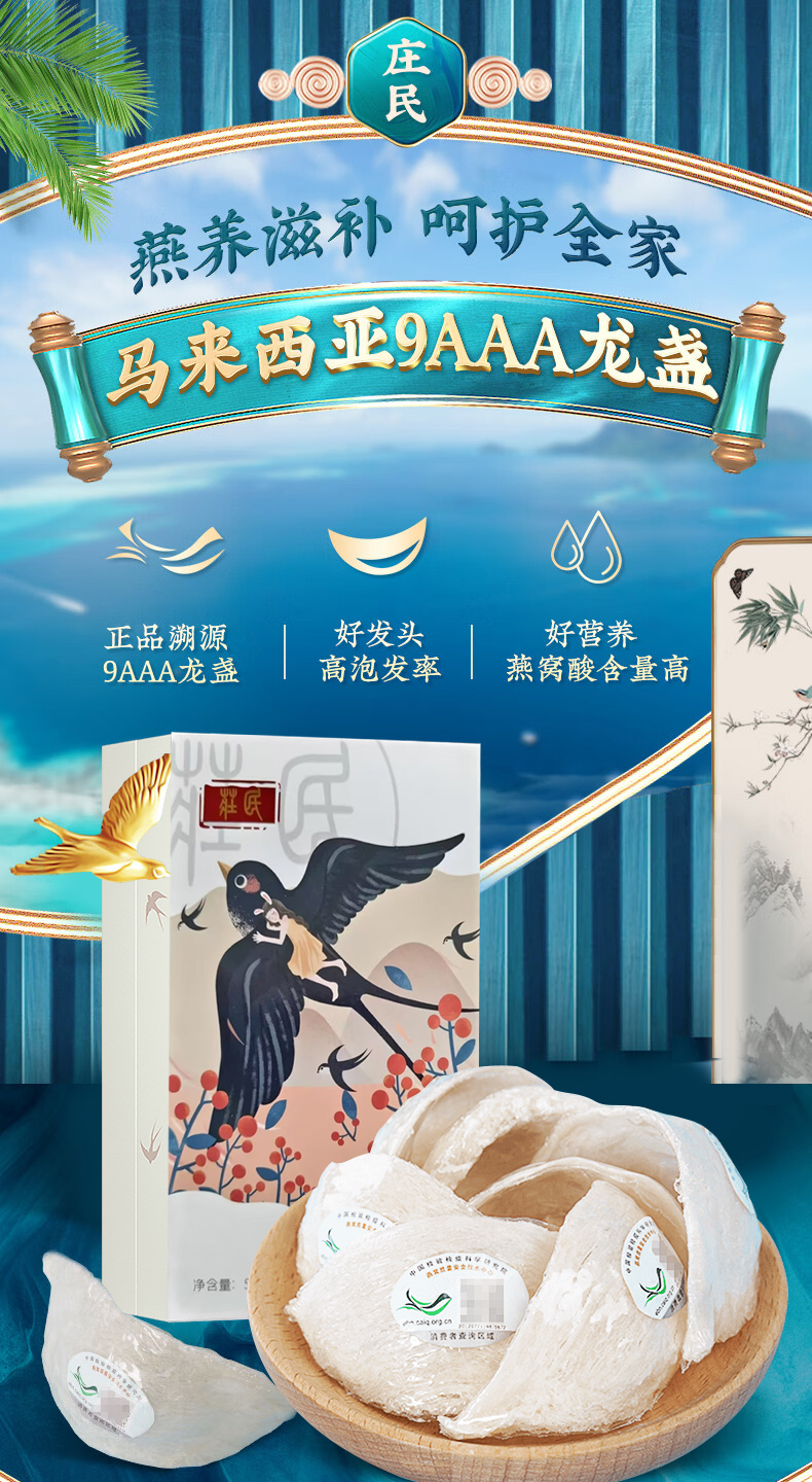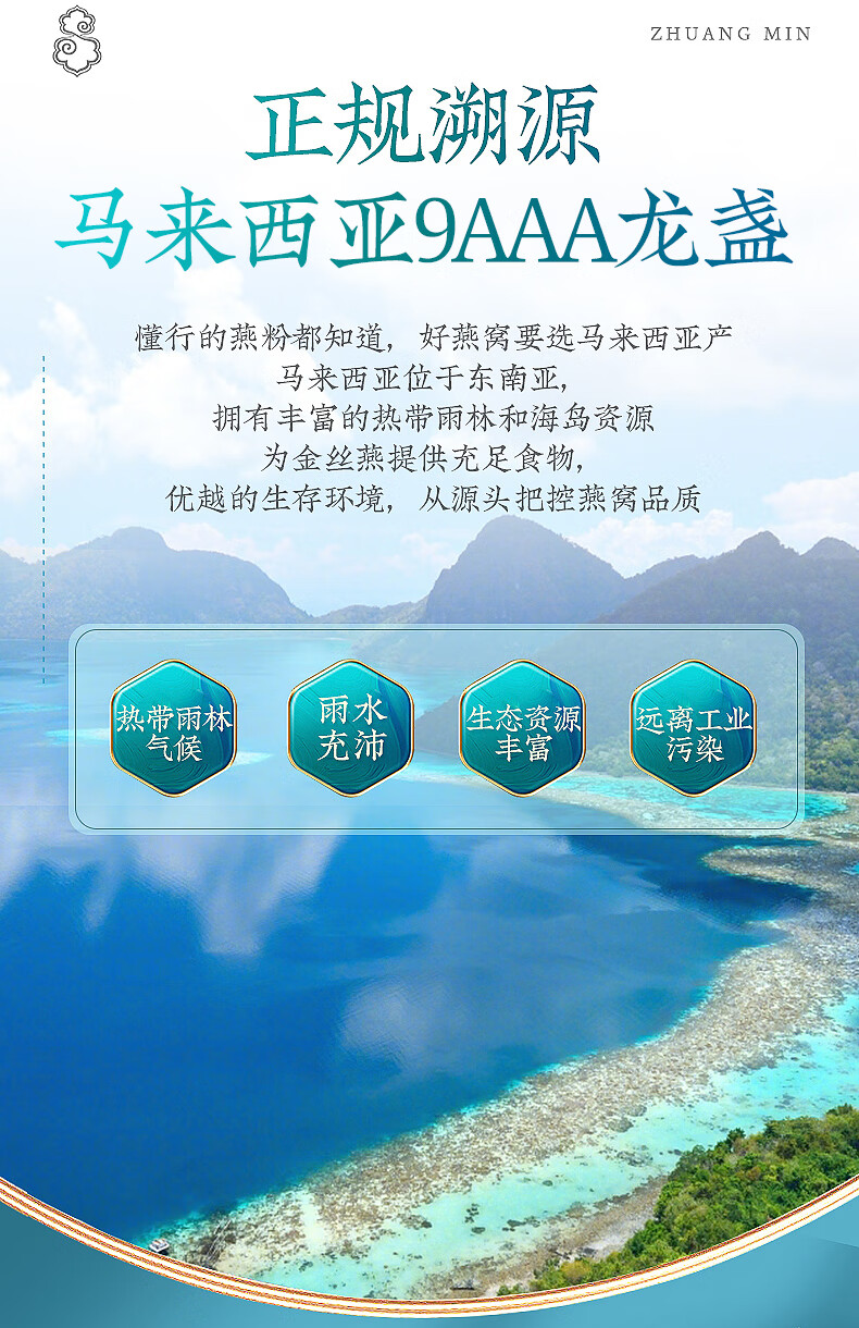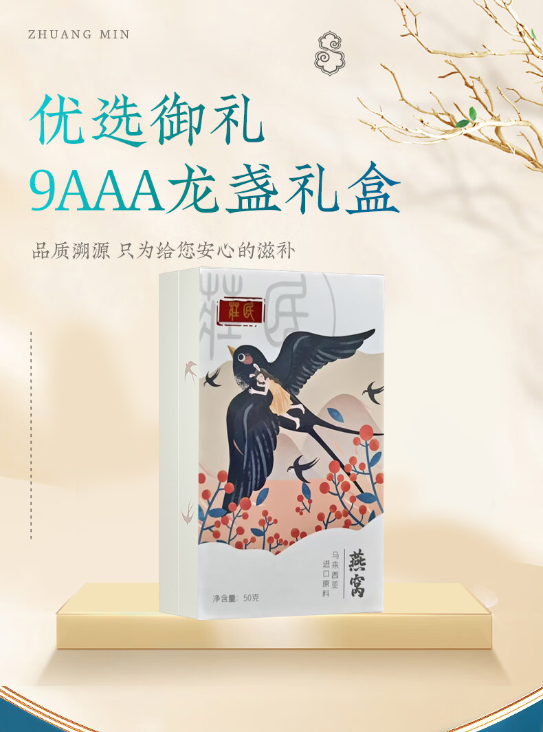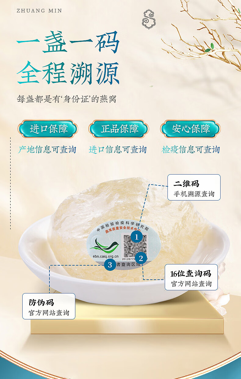 庄民 燕窝 9AAA干燕窝白燕盏正规马来西亚溯源 礼盒装50g 顺丰包邮