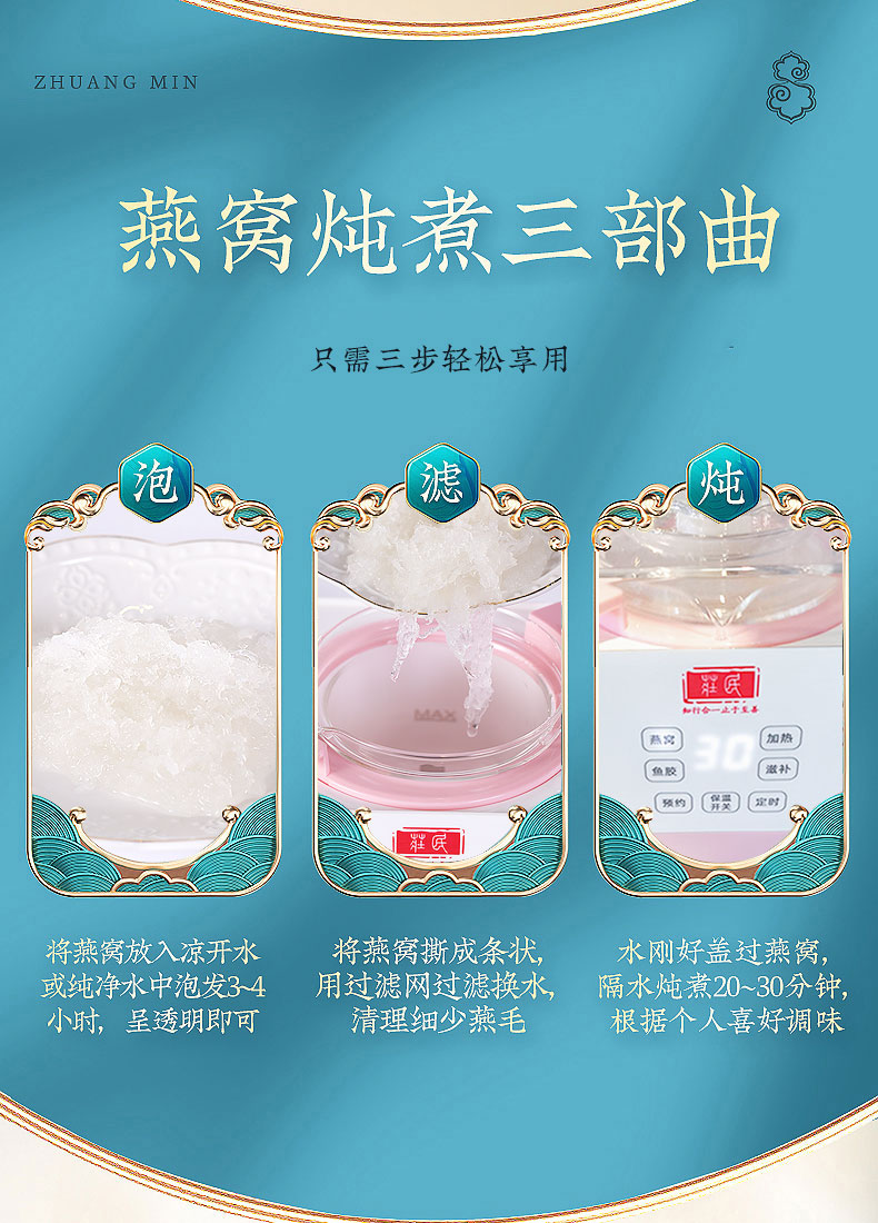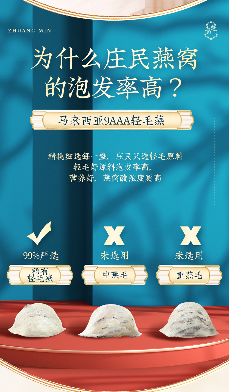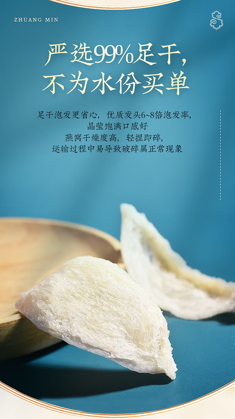 庄民 燕窝 9AAA干燕窝白燕盏正规马来西亚溯源 礼盒装50g 顺丰包邮