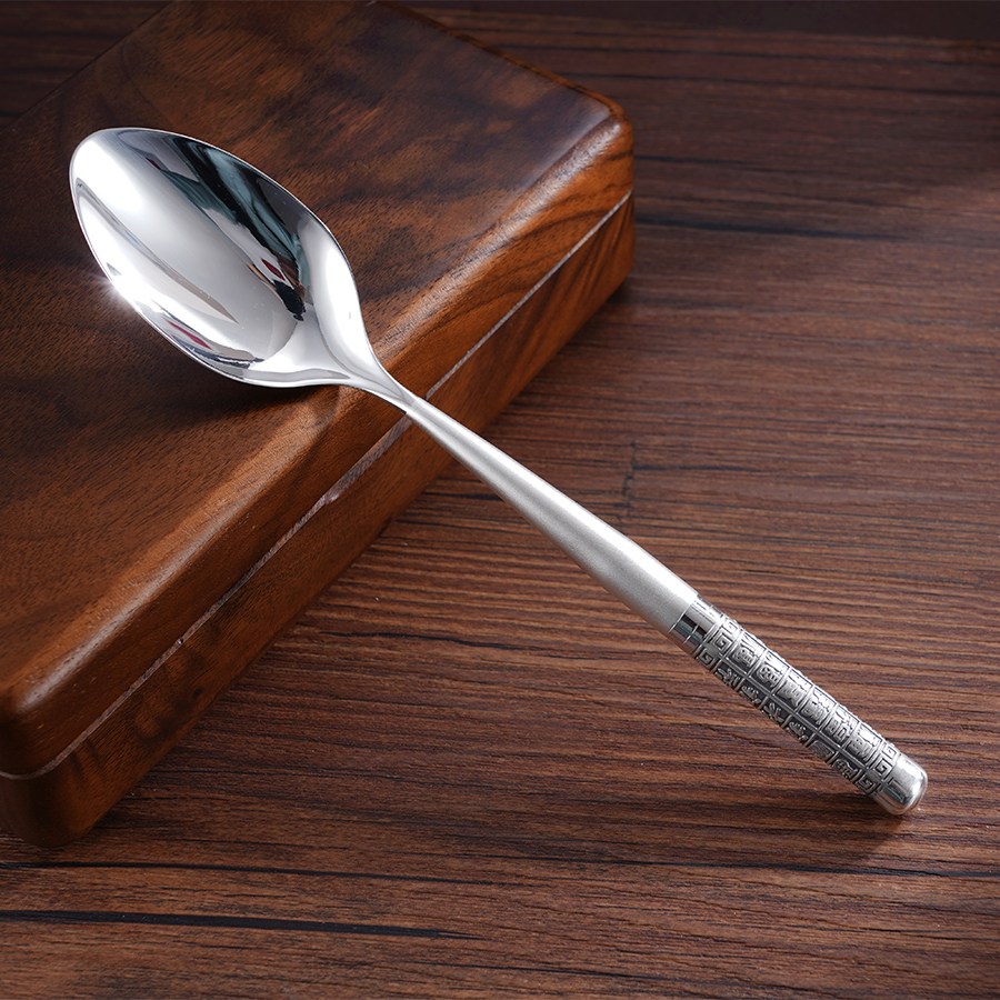 【寓意】:作品以足银材质打造,应用浮雕工艺于勺柄之处雕琢福字,凸显出有质感的防滑设计,又传递了福顺安宁的美好寓意。