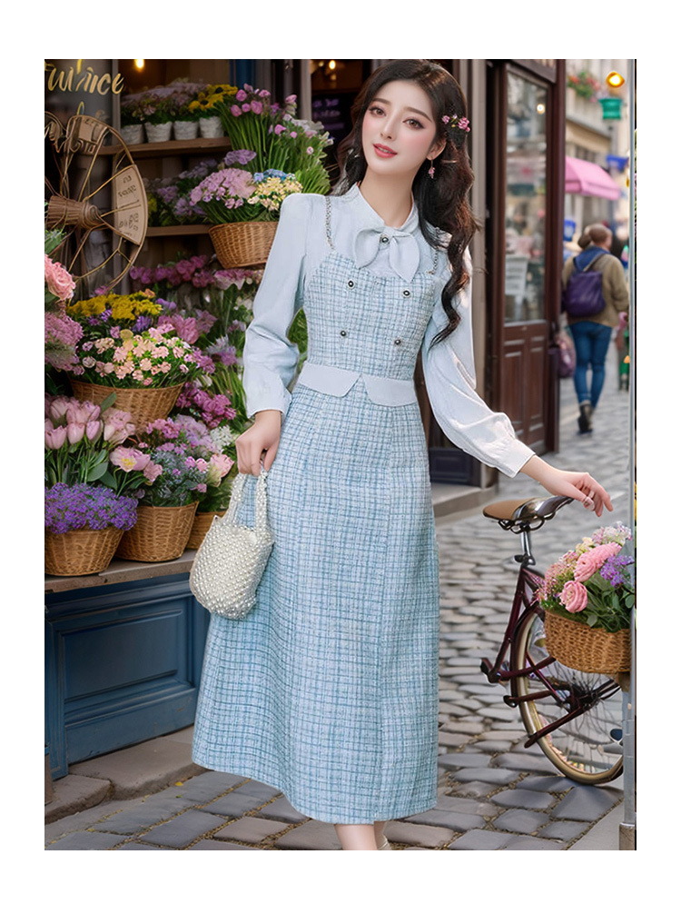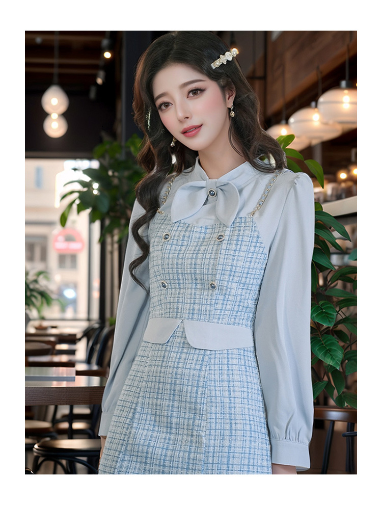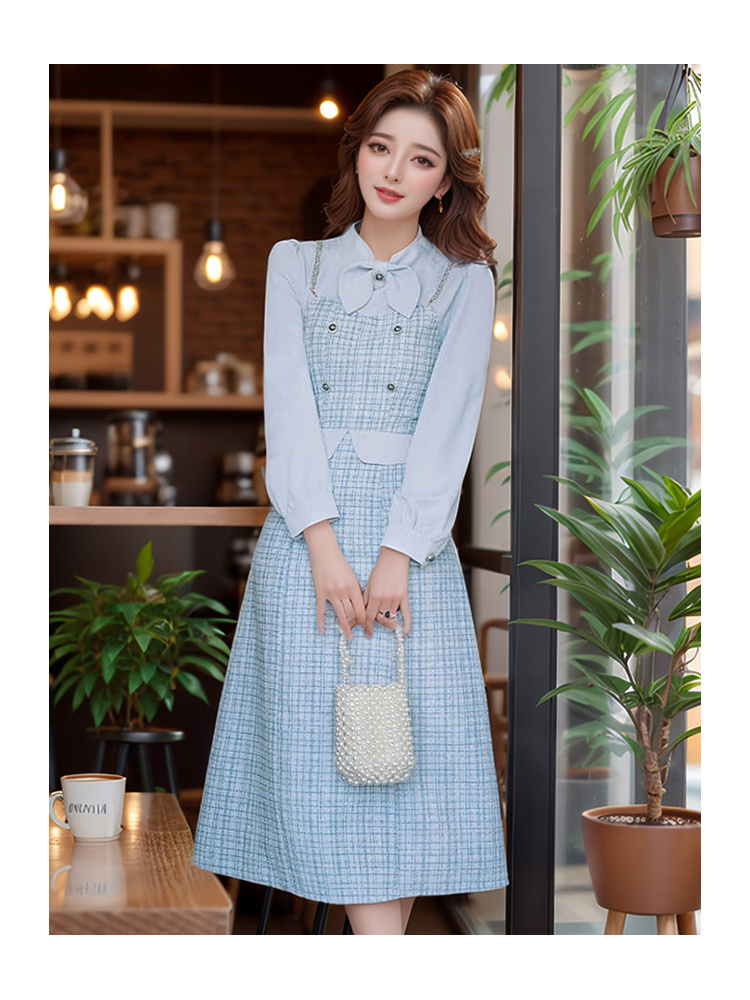 奢姿2024年秋季新款大码女装蝴蝶结假两件裙子胖妹妹小香风连衣裙9943891448