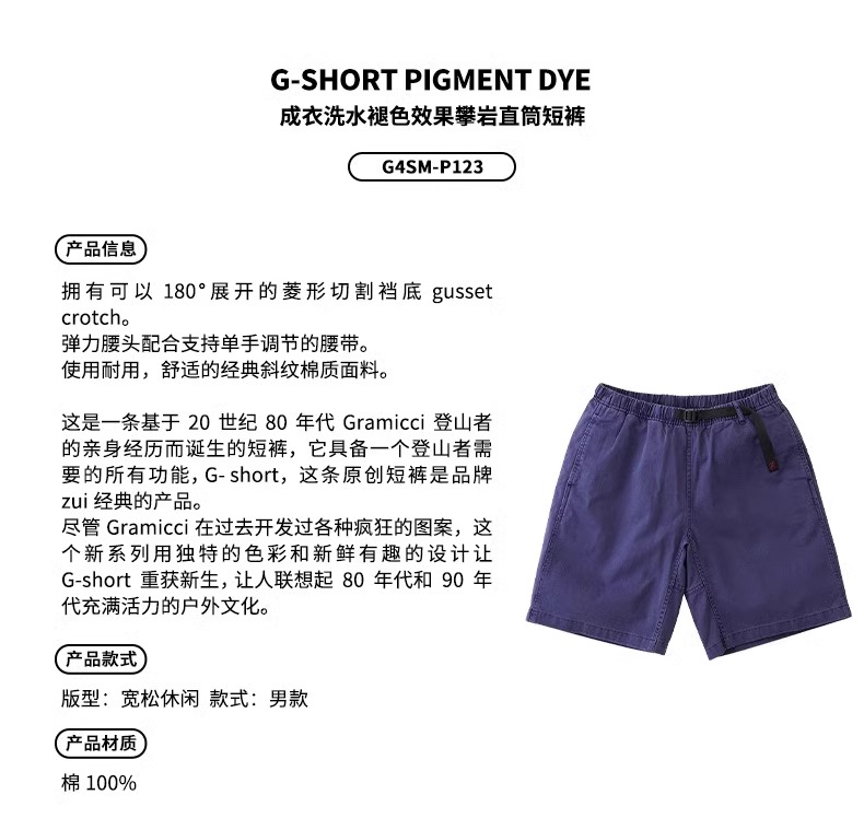 GRAMICCI小野人男士休闲耐磨工装短裤山系宽松滑板裤G4SM-P123