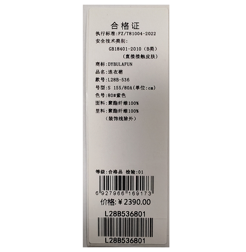 戴布拉芬连衣裙L28B536