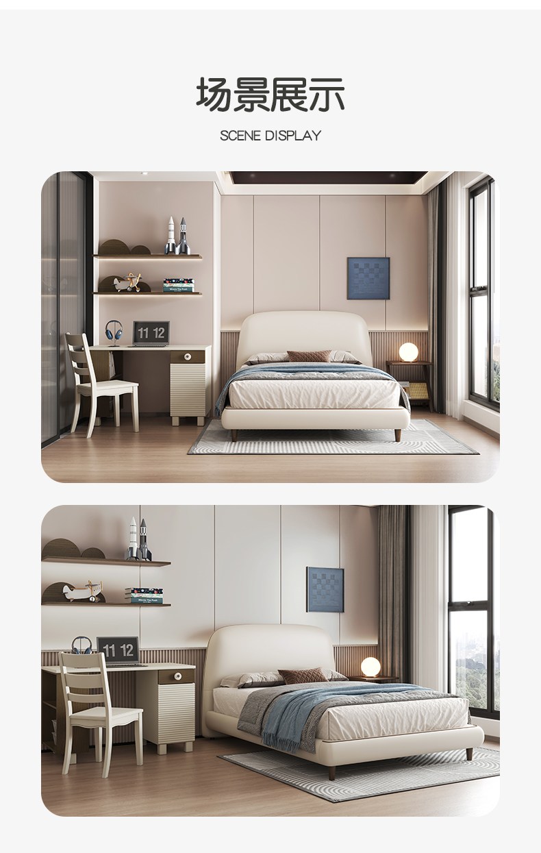 喜梦宝软包床儿童床卧室现代简约全包软包床轻奢现代防污耐磨