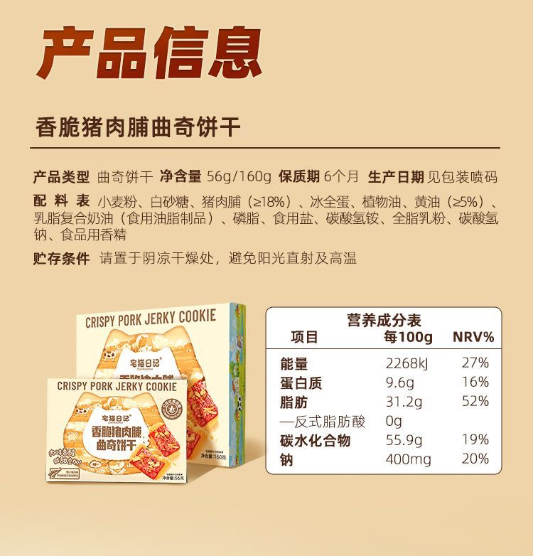 宅猫日记香脆猪肉脯曲奇饼干56克