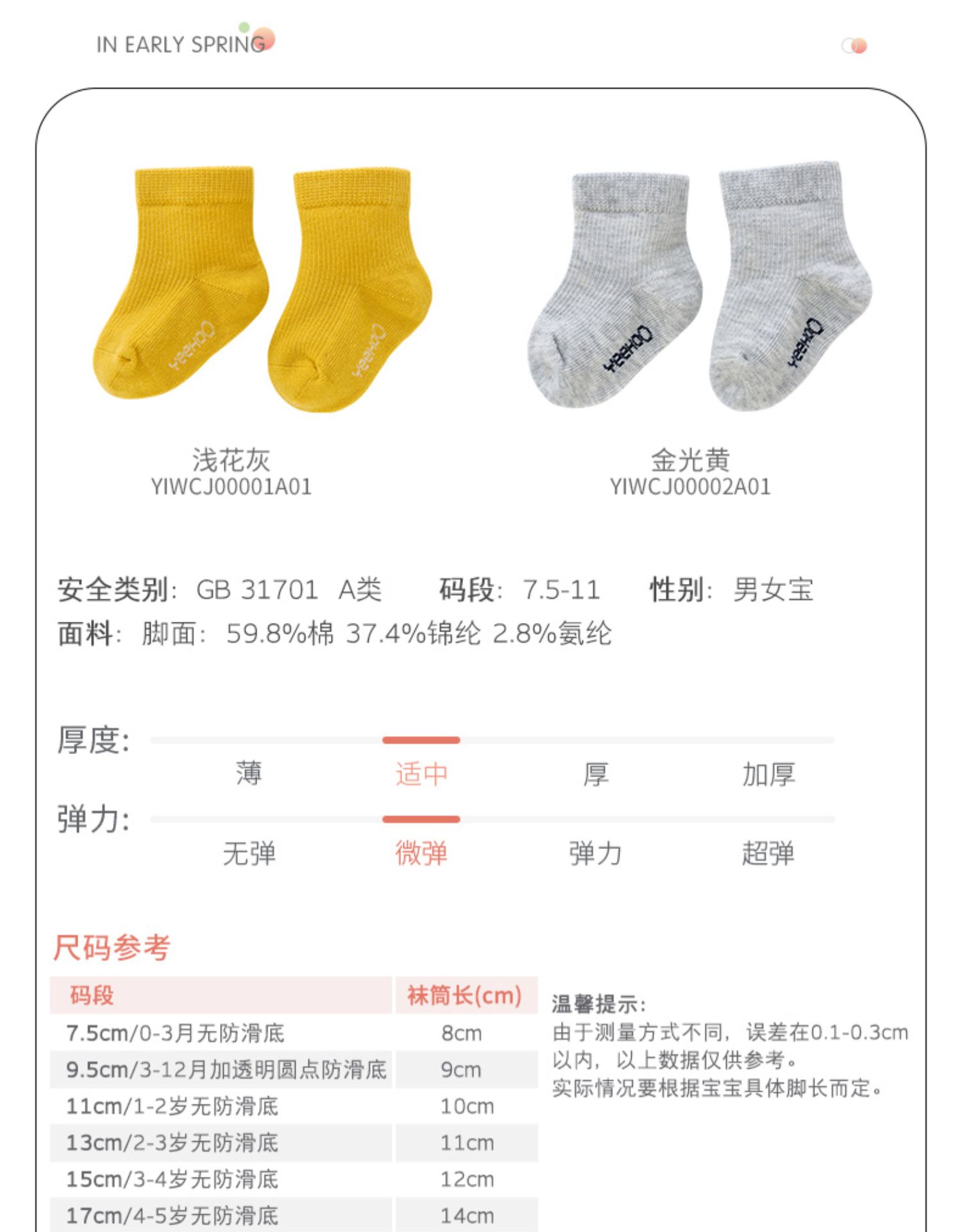英氏婴儿宝宝儿童袜袜子四季袜YIWCJ00001A01 YIWCJ00002A01