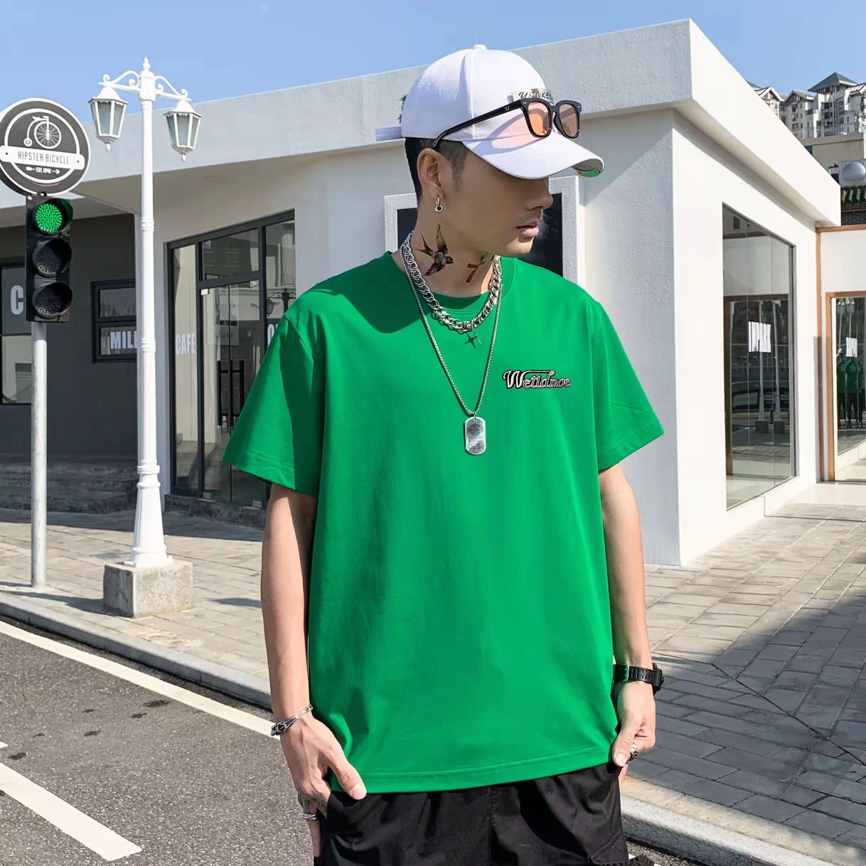 22159# 男女同款情侣款韩版T恤 颜色:绿 尺码: M-3XL