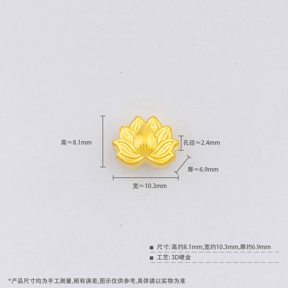 【限时7.5折】【定价黄金】足金 【精品】3D硬金空心仿古法手串配件好事莲莲敦煌佛莲莲花转运珠Diy手串配件(AU3DSC00008)(预售产品下单后不退款不退货不换货不补差价
