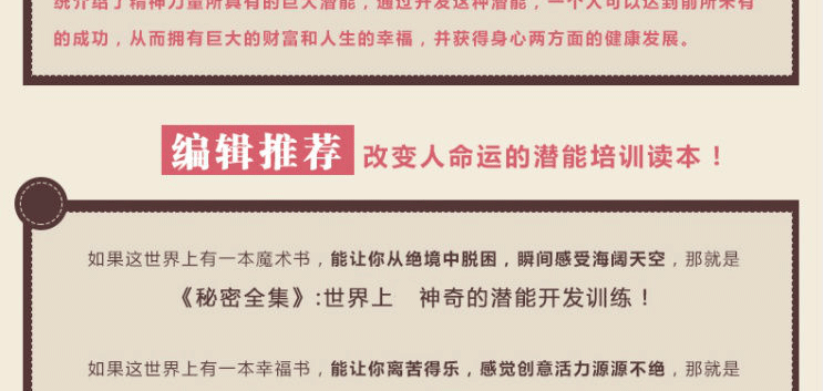【正版】 秘密全集 法则大脑潜能训练自我修养 神奇的个人磁场效应正能量心理学与生活书 人格心理学励志成功学畅销书排行榜