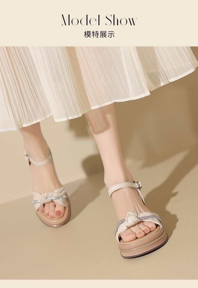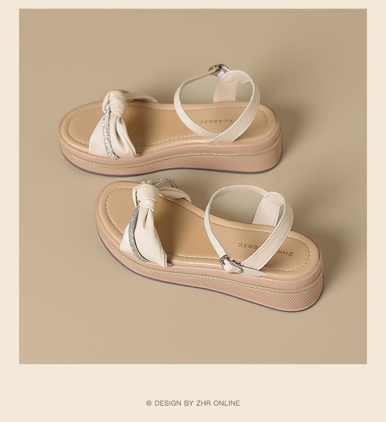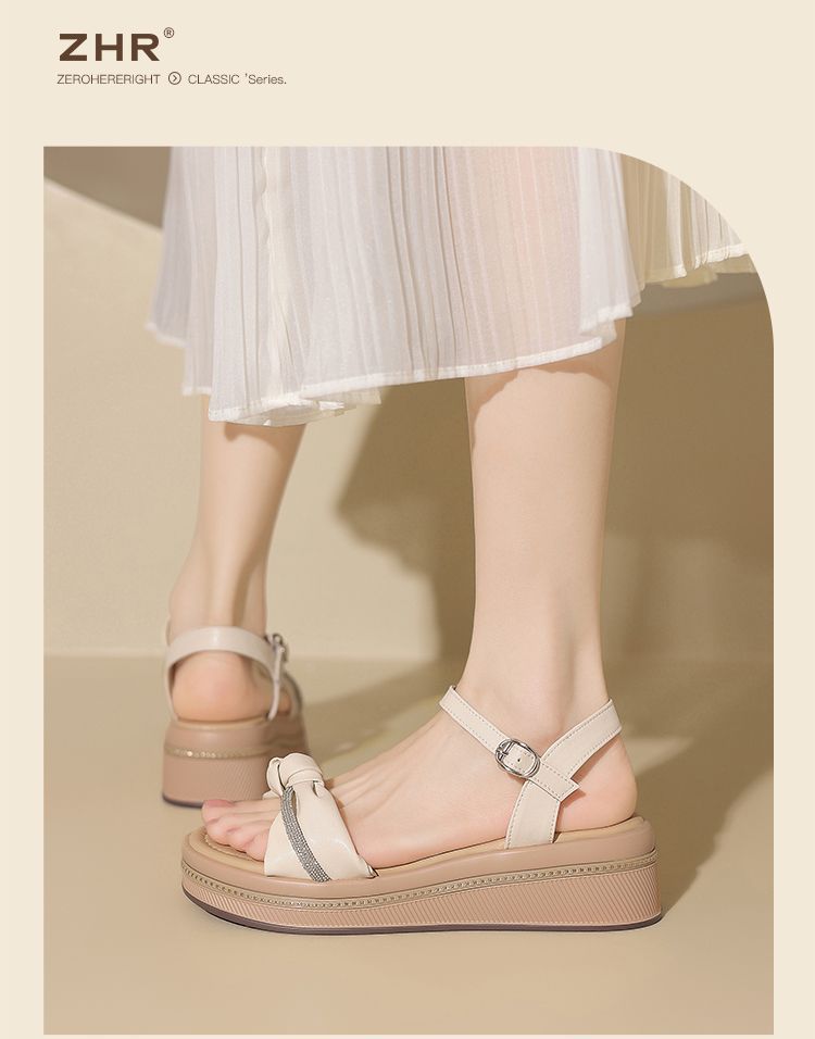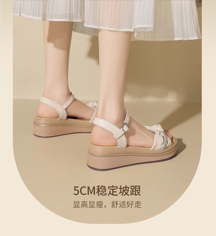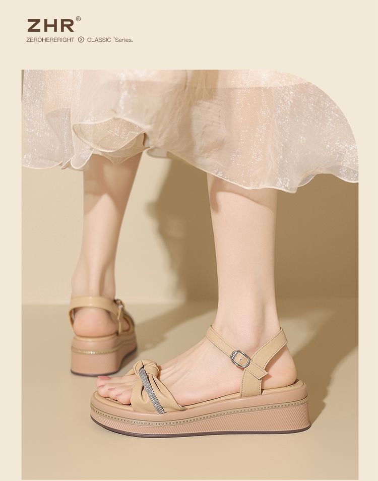 ZHR坡跟凉鞋女2025新款夏季网红高级水钻凉鞋轻便厚底增高凉鞋女