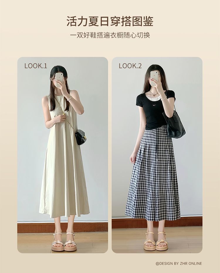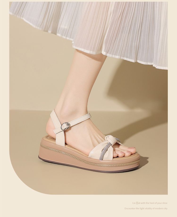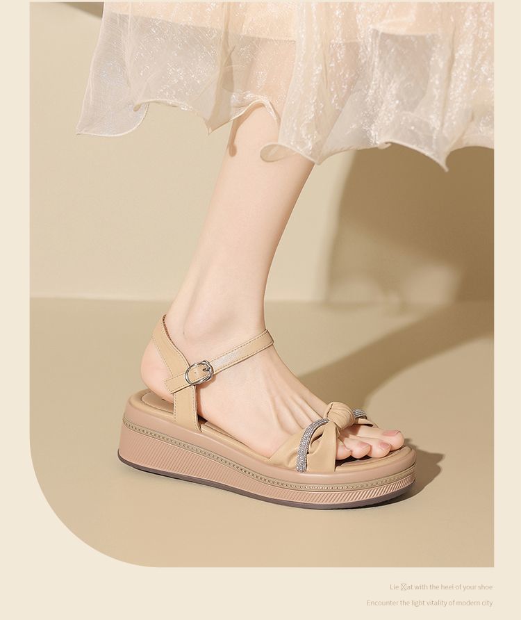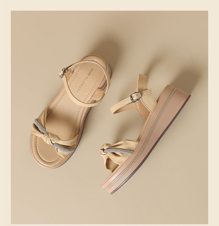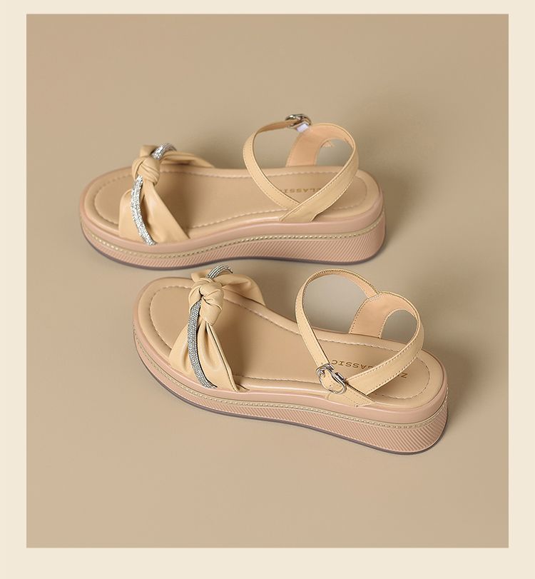 ZHR坡跟凉鞋女2025新款夏季网红高级水钻凉鞋轻便厚底增高凉鞋女
