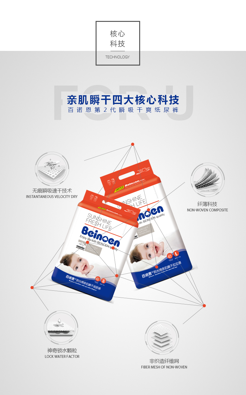 (2包装)百诺恩(Beinoen)婴儿拉拉裤超薄尿不湿透气干爽男女宝宝学步裤拉拉裤L/XL/XXL码
