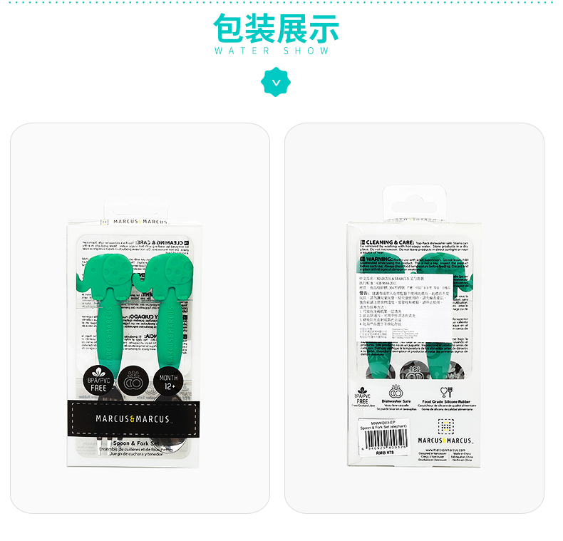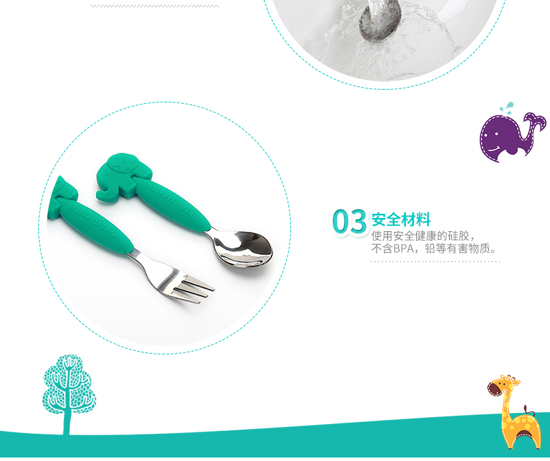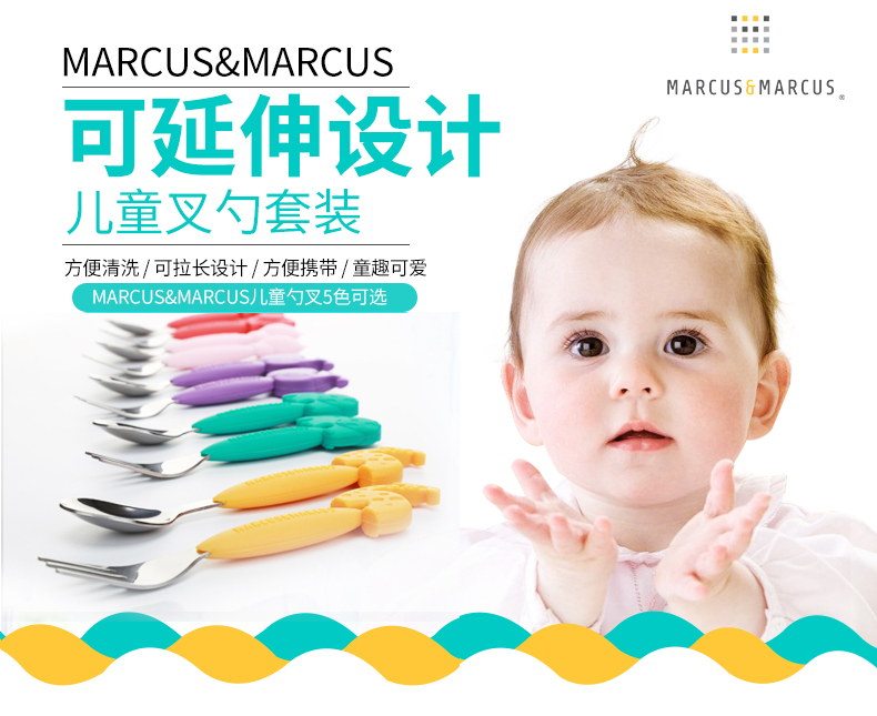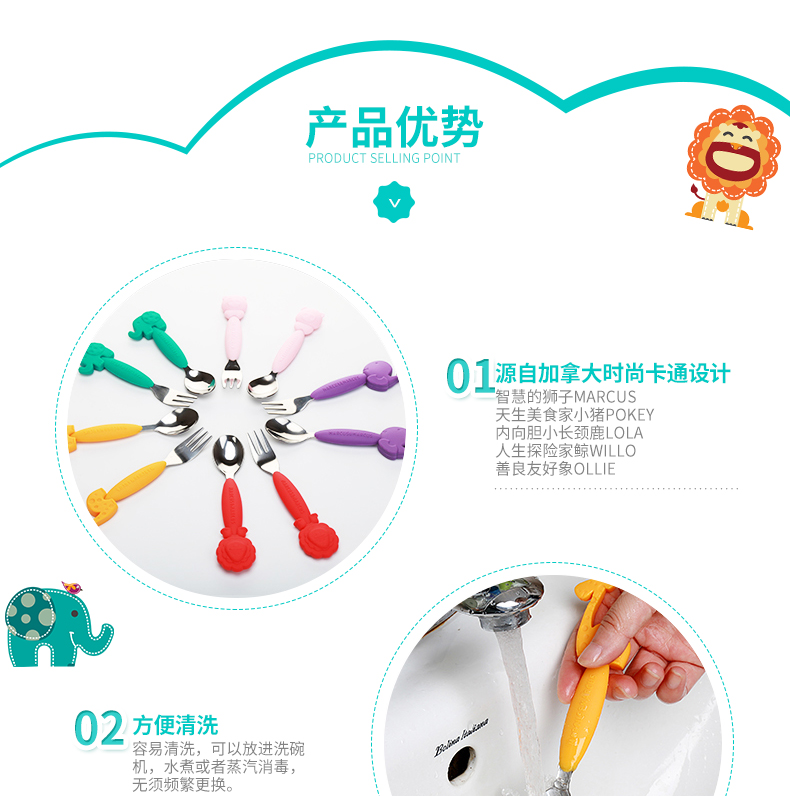 加拿大MARCUS&MARCUS硅胶叉勺套装卡通硅胶不锈钢辅食餐具【马库狮】
