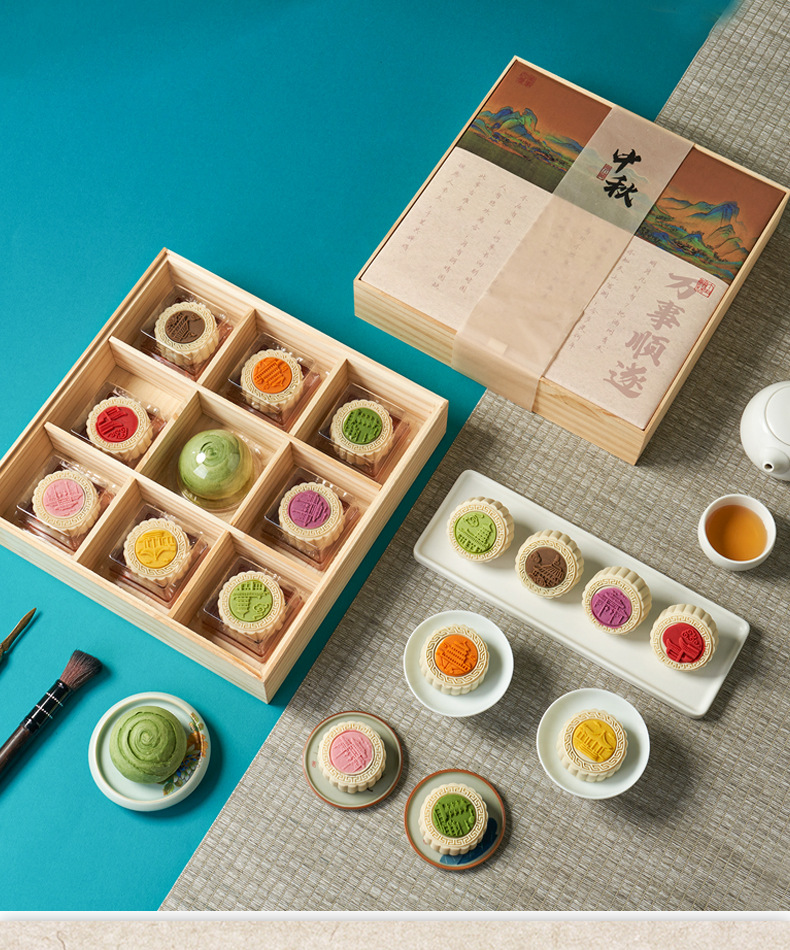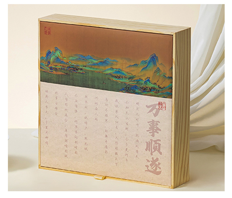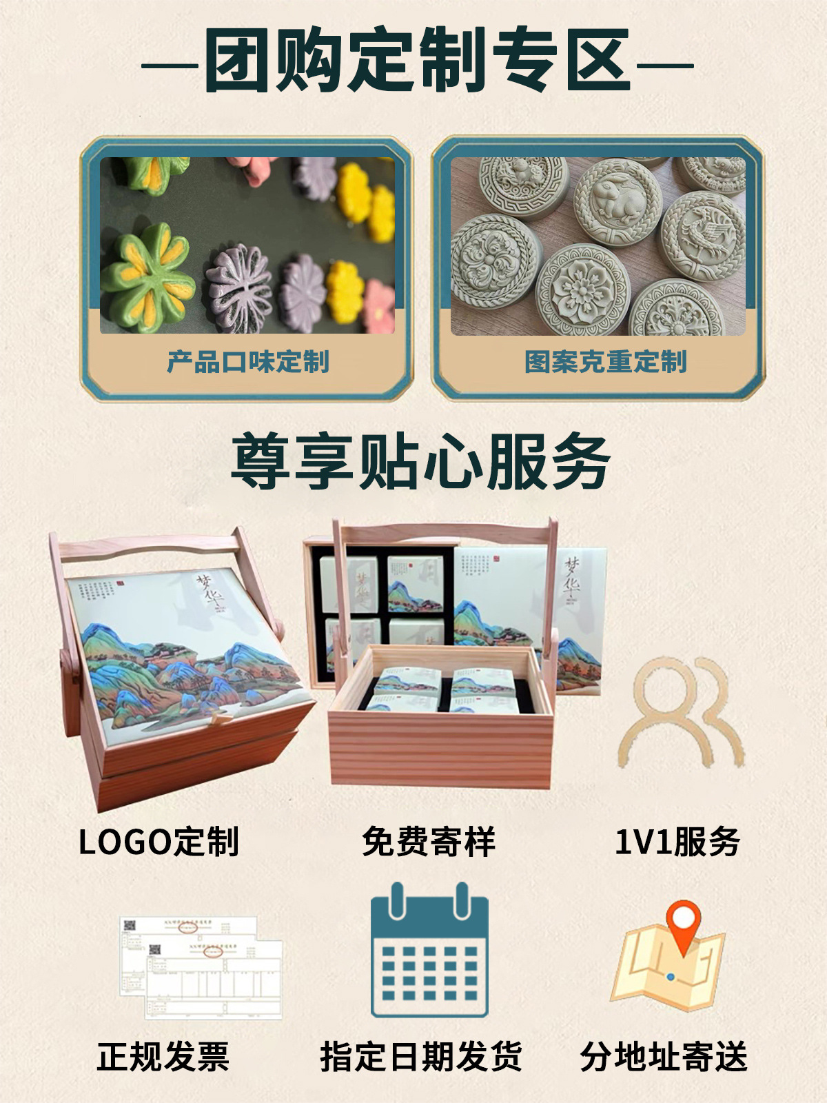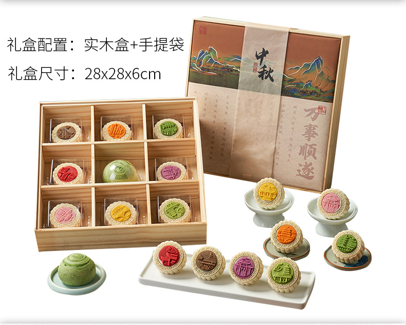 中秋月饼实木万事顺遂礼盒装465g传统节日糕点送礼高档茶月饼批发