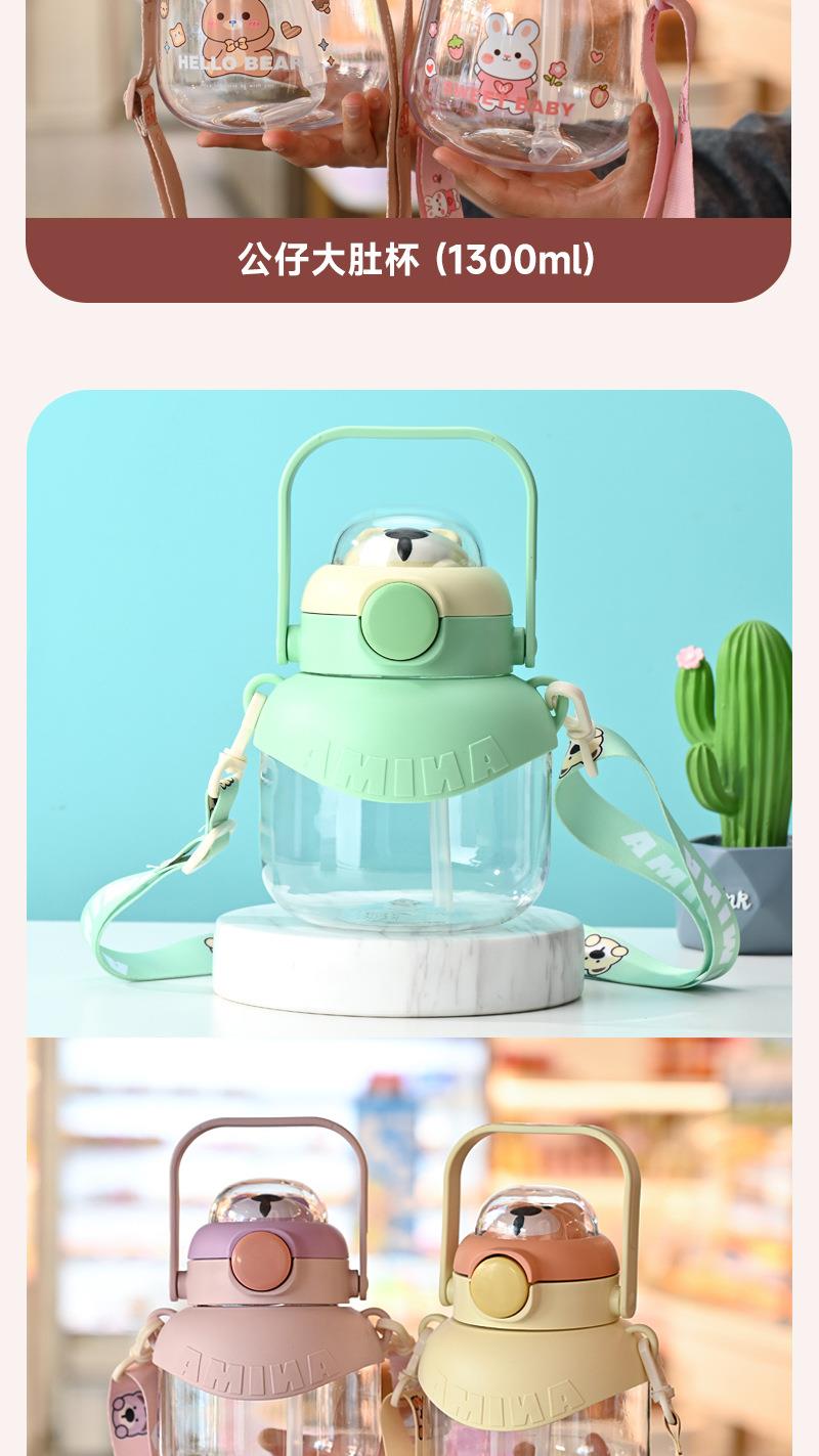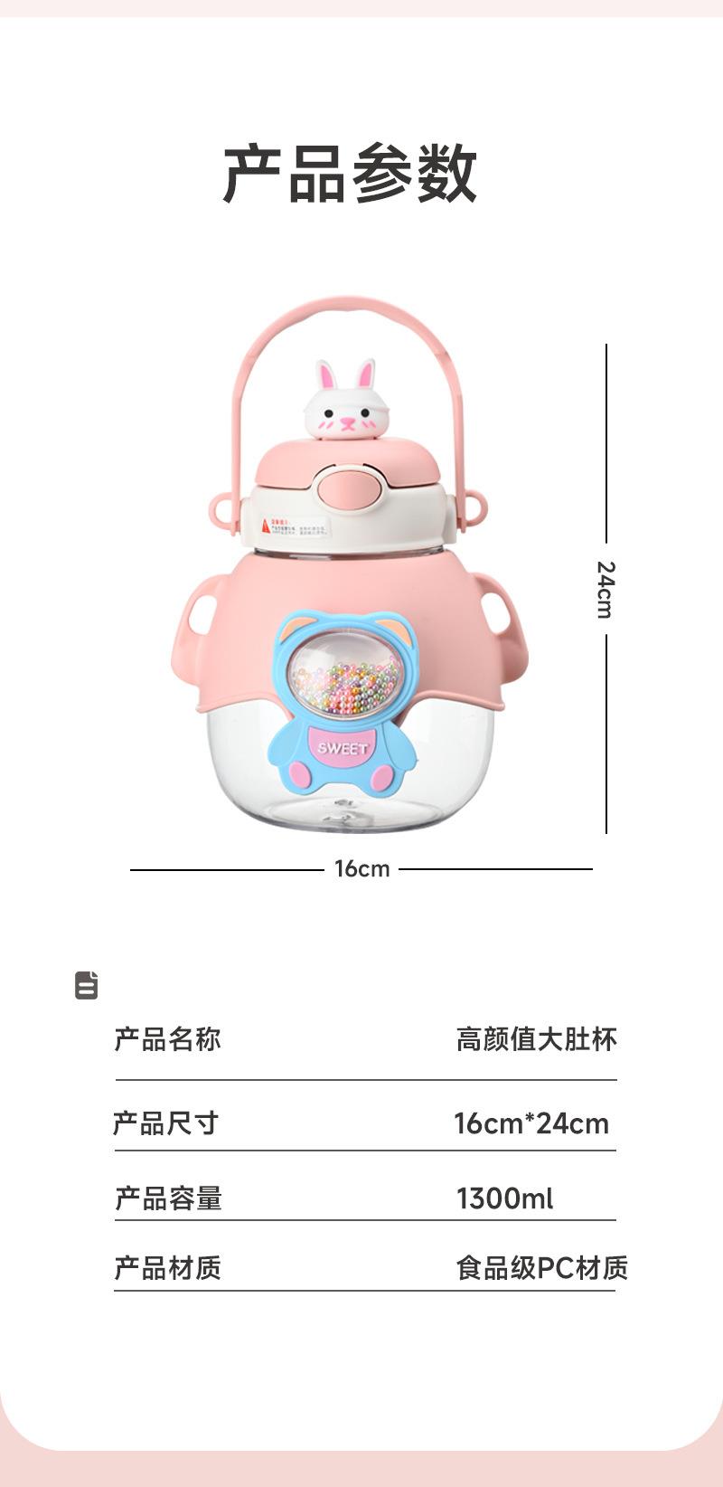 大肚杯儿童卡通吸管水杯高颜值户外水壶学生塑料杯礼品杯子