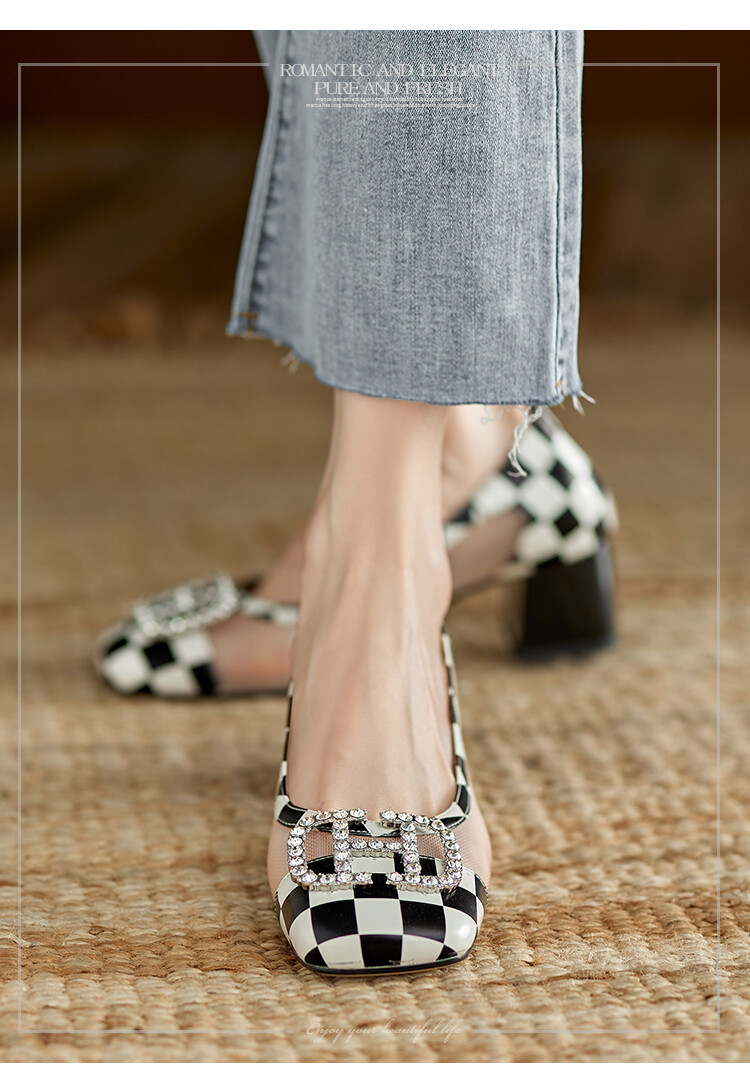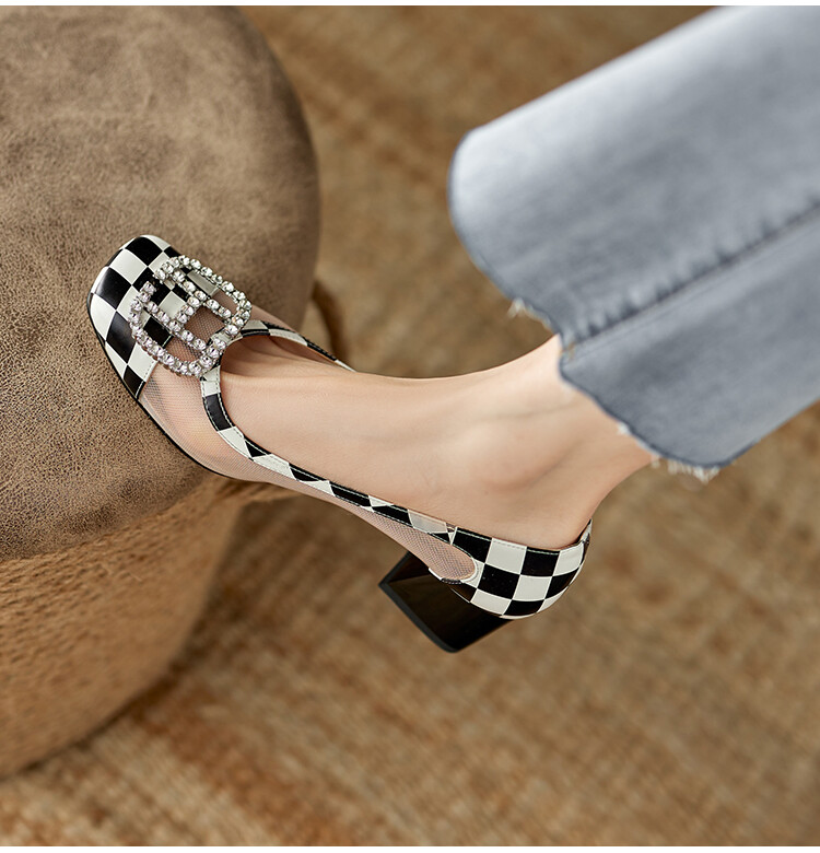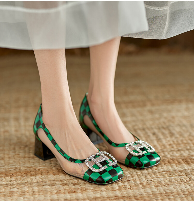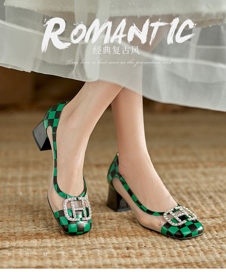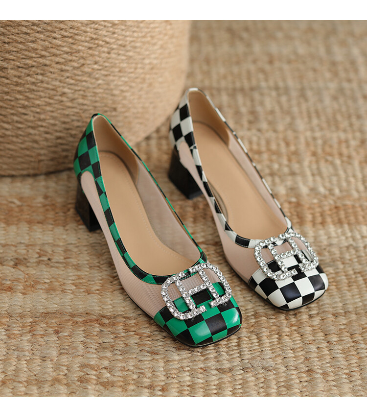 时尚拼接,头层牛皮拼接圆头中跟单鞋GBL-L22-52-1