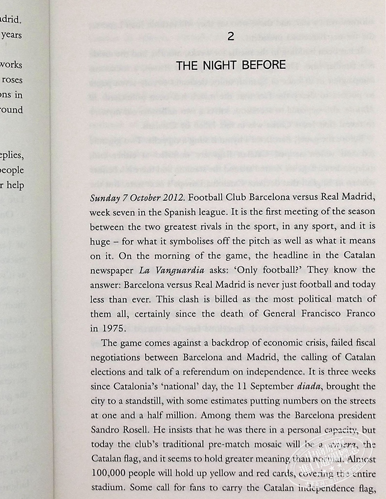 ...Only, it's not that simple. From the wounds left by the civil war to the teams' recent global domination, historian and expert on Spanish football, Sid Lowe lifts the lid on sport's greatest rivalry. Lowe has spoken to the biggest names and the forgotten heroes who defined their clubs. Men like Alfredo Di Stefano and Johan Cruyff as well as the only survivor of the most politically charged game in history, the Barcelona striker who knocked Madrid out of the European Cup for the first time ever, and the president who celebrated his club's defining moment by taking a midnight dip in the Thames.