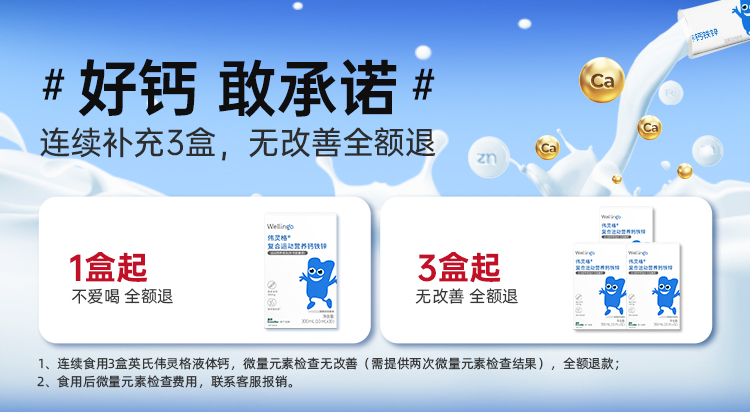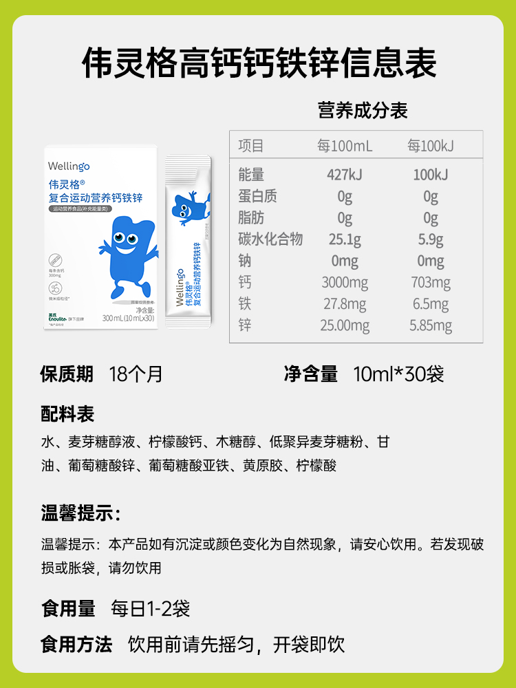 【伟灵格社群第二件半价】英氏伟灵格钙铁锌液体钙300ml(10ml*30条)不含8大过敏原,酸奶口味