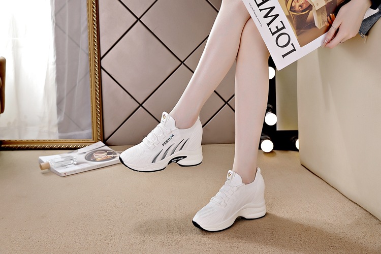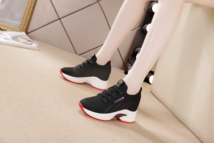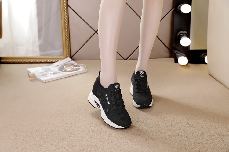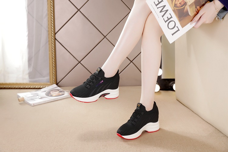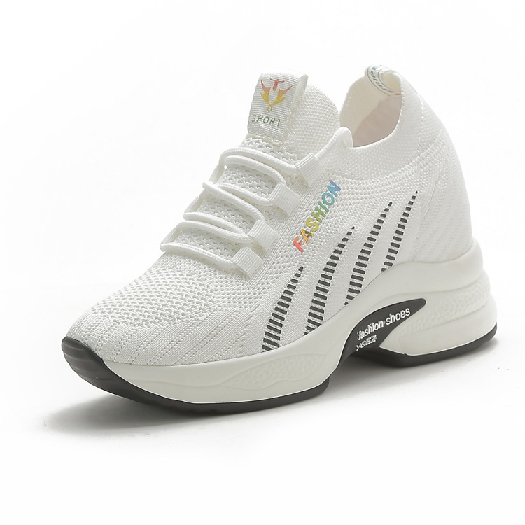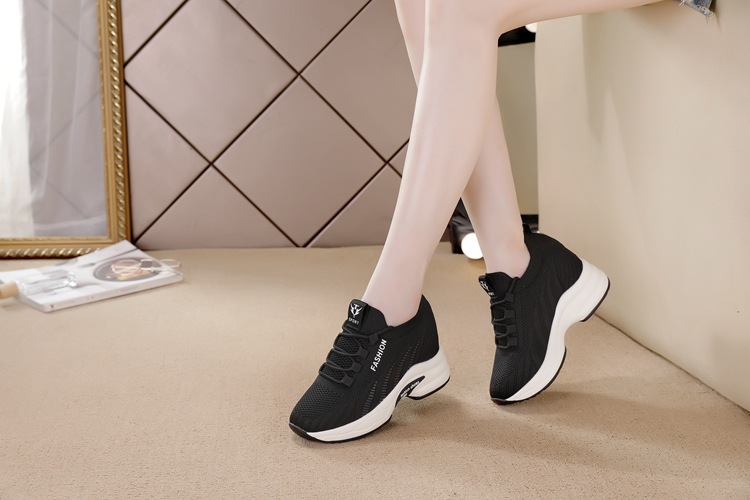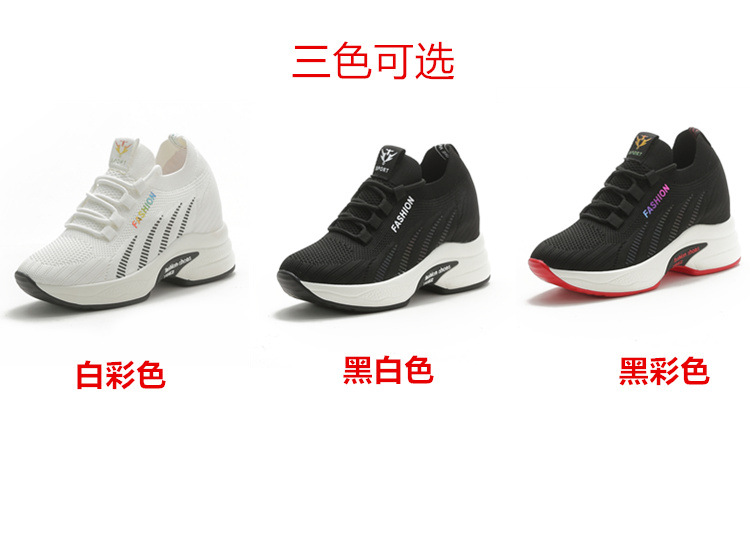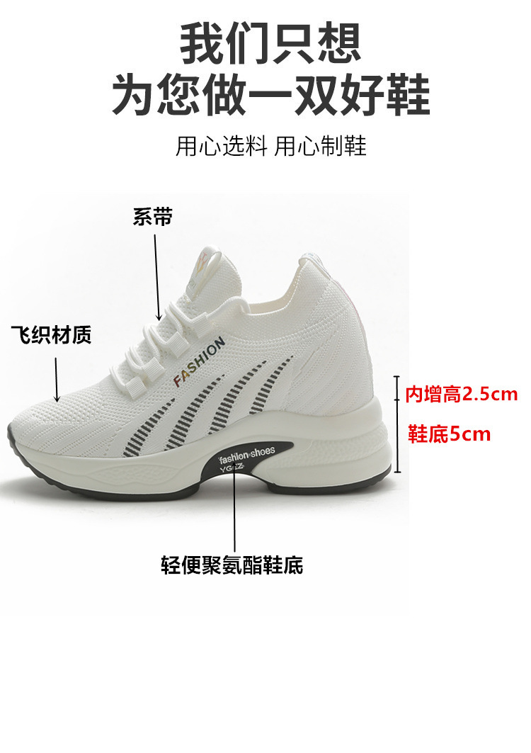 内增高老爹鞋女飞织透气秋季坡跟系带休闲鞋厚底运动鞋旅游鞋板鞋 ZY001