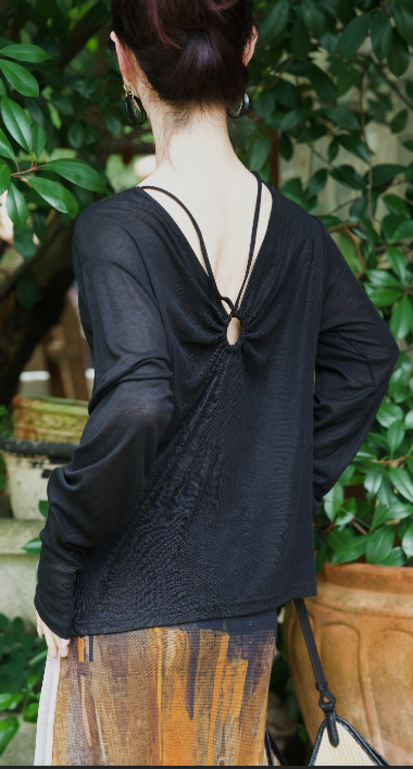 【门店同款】ENJOY夏季性感V领镂空长袖T 158592915