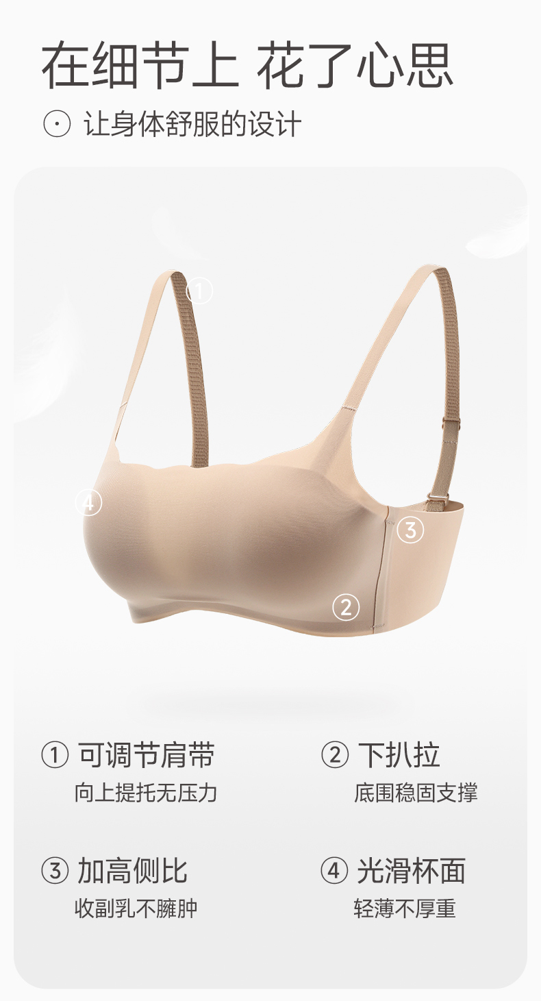 女士内衣上托光面无痕小胸文胸新款无钢圈收副乳透气舒适胸罩 芬腾