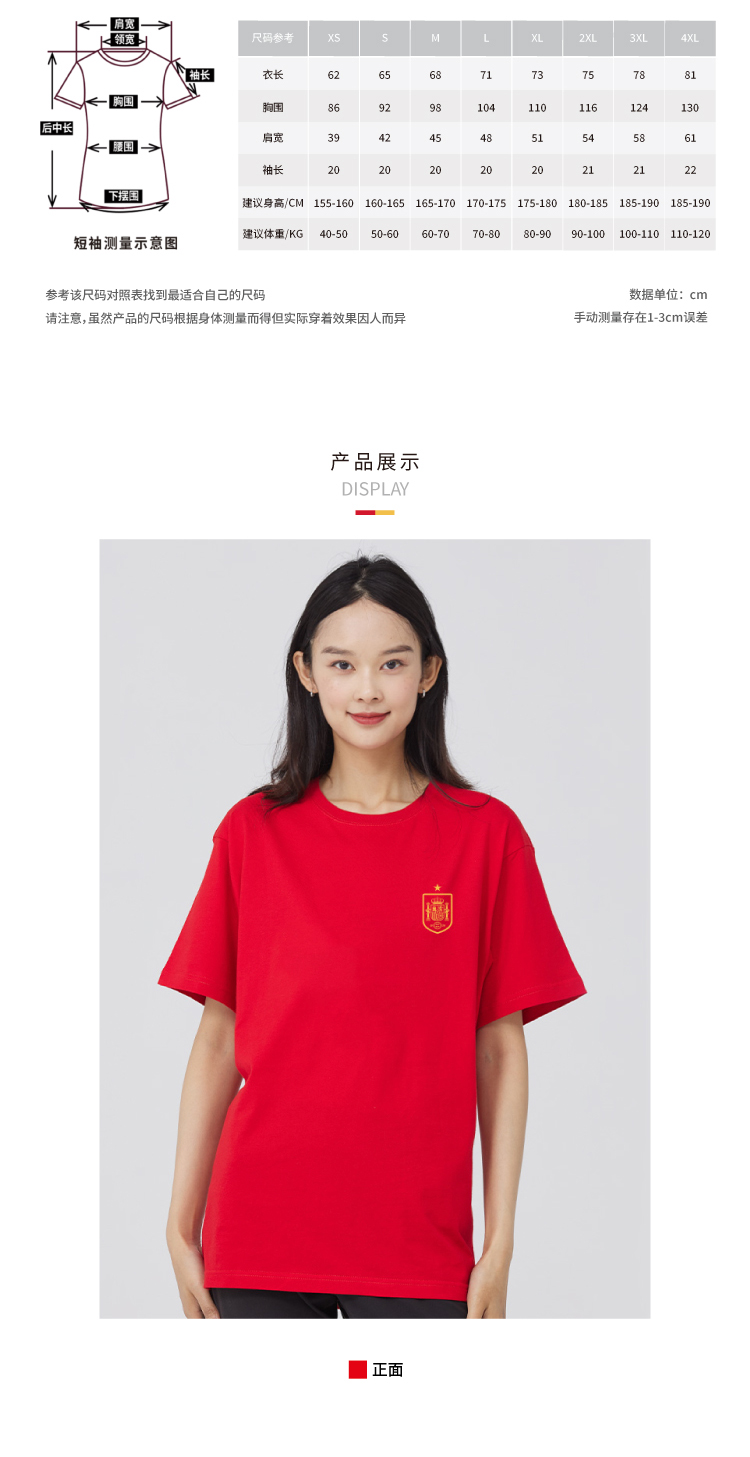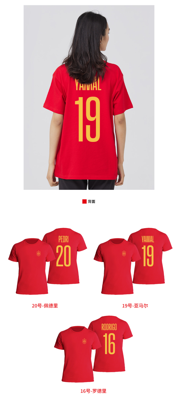 【官方正版】西班牙国家队|球员印号助威T恤欧洲杯足球迷红限定短袖