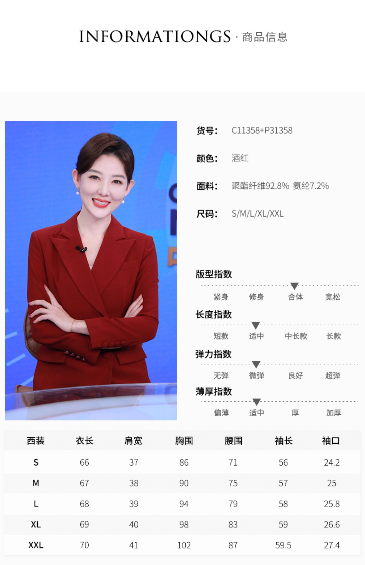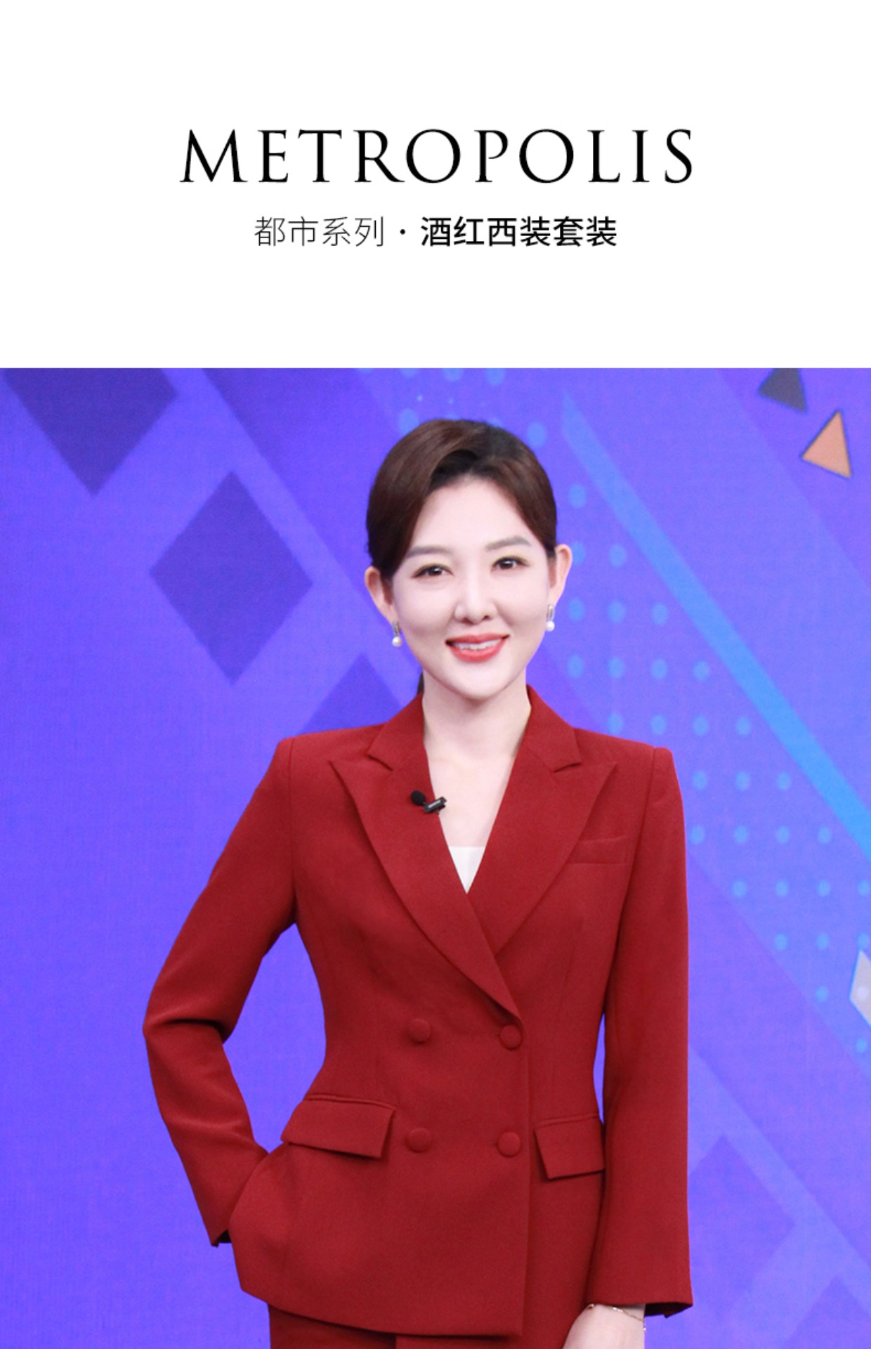 IWY/经典酒红色西装套装女秋冬2022新款英伦风设计感西服正装职业装olC11358+P31358