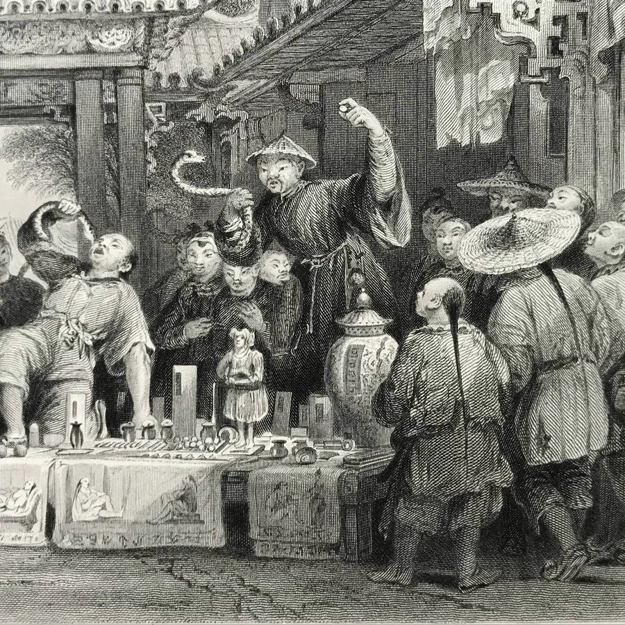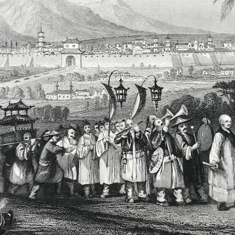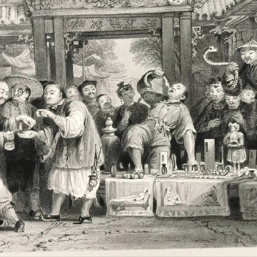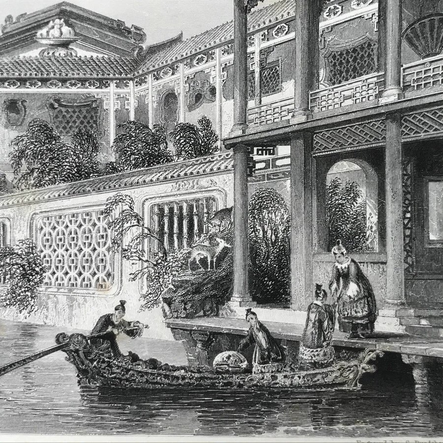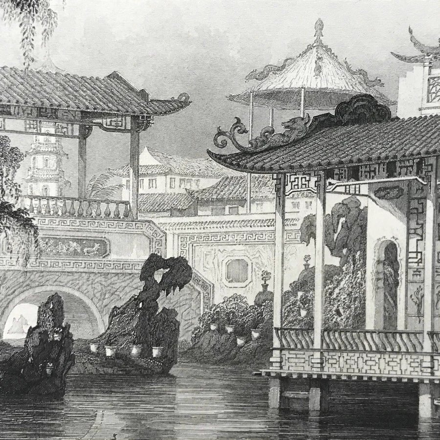 19世纪中华帝国古老风光建筑与社会版画 带装裱 12款可选(I系列)
