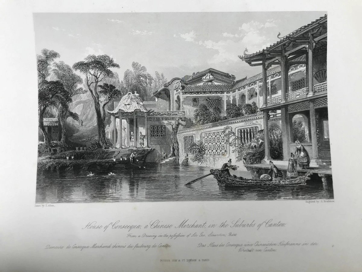 托马斯·阿罗姆(ThomasAllom,1804-1872),一个没有到过中国的英国人,所画的中国风景却成了西方最早,也最有名的关于中国历史的图画本教科书。《中华帝国:古老的风光建筑和社会》是一部描述古老中国社会风貌的画集册,从一个独特的视角真实地反映了中国的历史、社会、民俗、文化以及东西方的文化交流。本书的插图包括中国的长城、运河、圆明园、景山、午门、虎丘塔、雷峰塔、报恩寺、琉璃塔、金山寺、龙舟、灯笼、宴请、辫子……托马斯·阿罗姆的画作气派恢宏,总体格调类似一幅幅巨大的舞台布景,无论山水还是建筑,氛围都似人间仙境。他对光影的强调,更加深了画面的剧场效果。这些画作的钢板雕刻由不同的雕工完成,工艺精湛,堪称完美无缺。此书出版发行后,成为英国乃至欧洲有名的插图本的中国历史教科书。据传,当时欧洲人关于中国的丰富知识,大部分是从这部书的文字和图画中获得的。