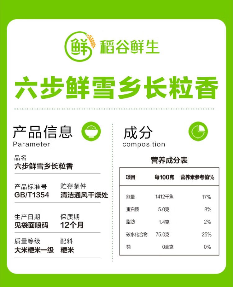 金龙鱼稻谷鲜生六步鲜雪乡长粒香1kg/袋