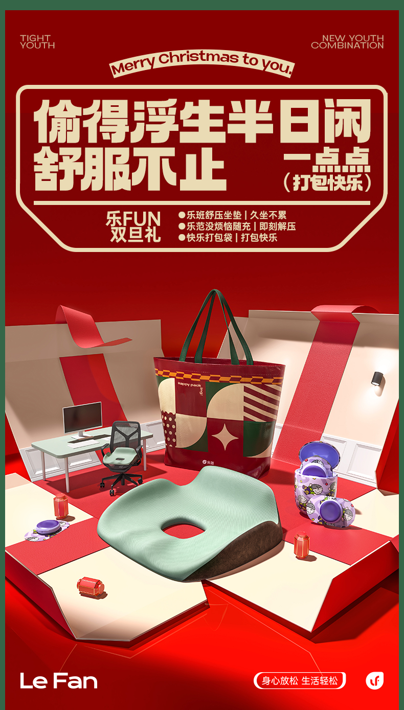乐FUN圣诞礼套装 舒压坐垫+随充按摩器+打包快乐礼袋