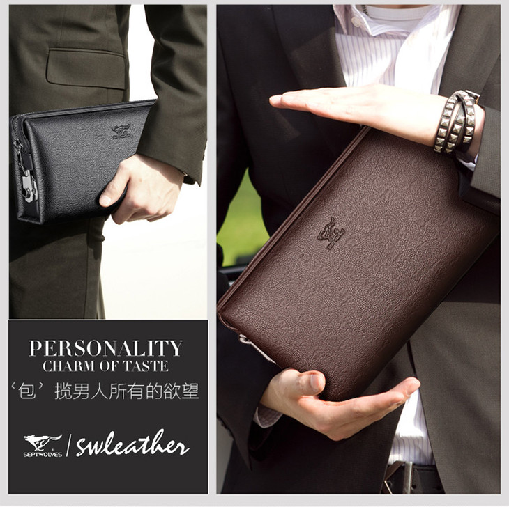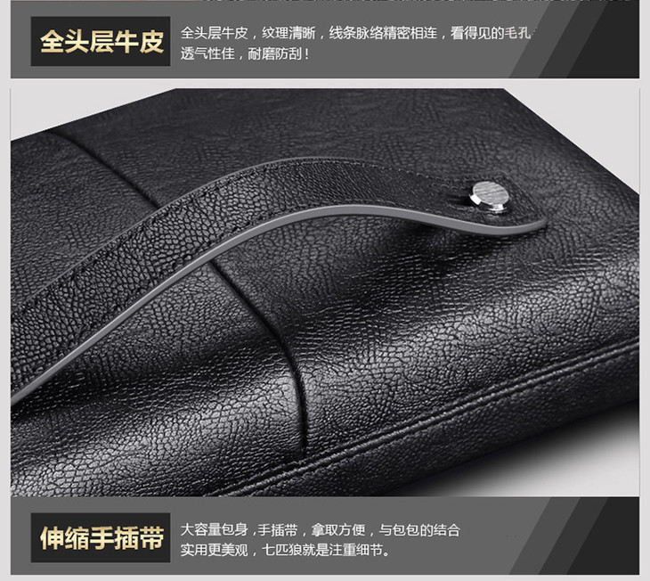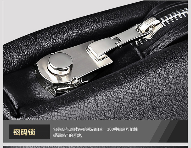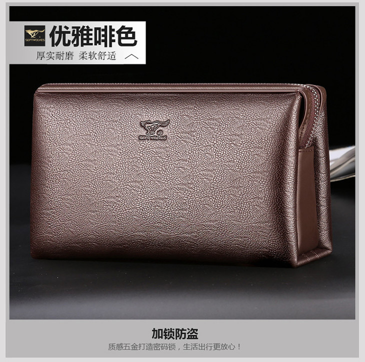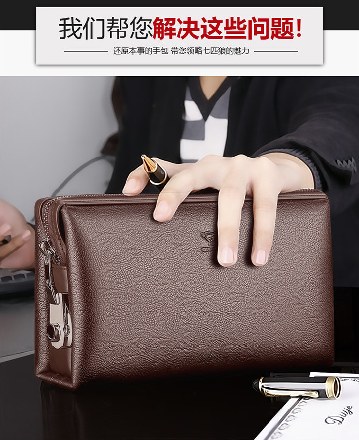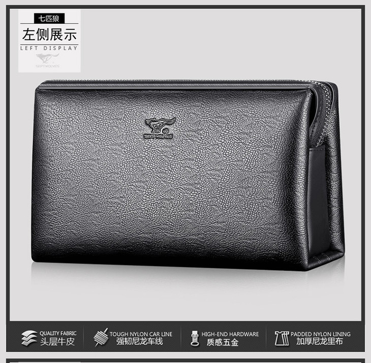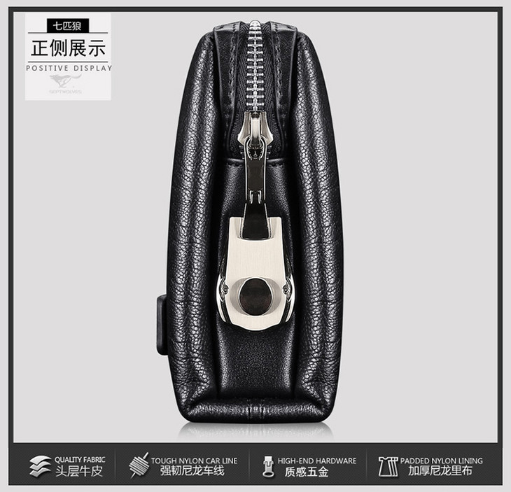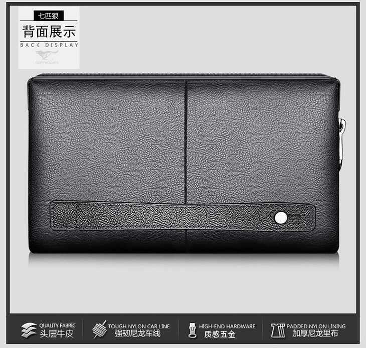 七匹狼男包 男士手包大容量商务拉链手拿包 密码锁男包1A1172162-01黑色