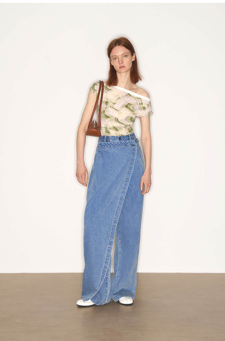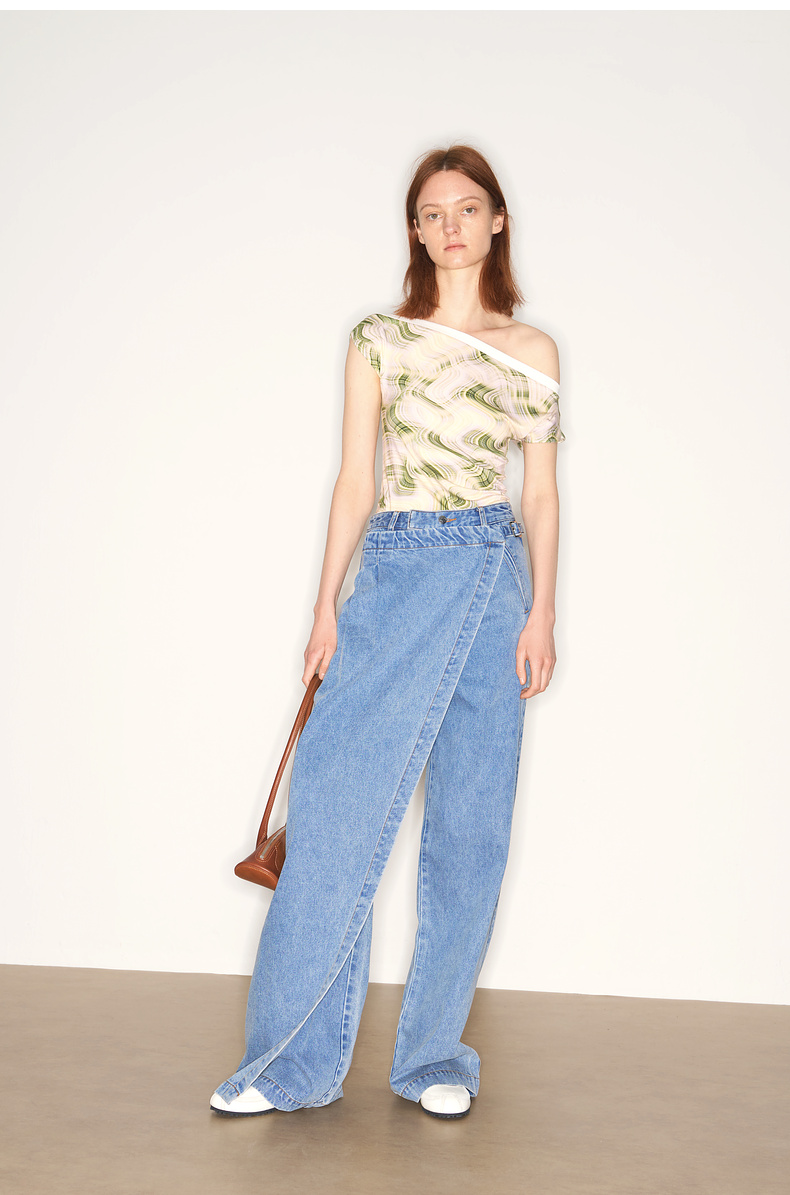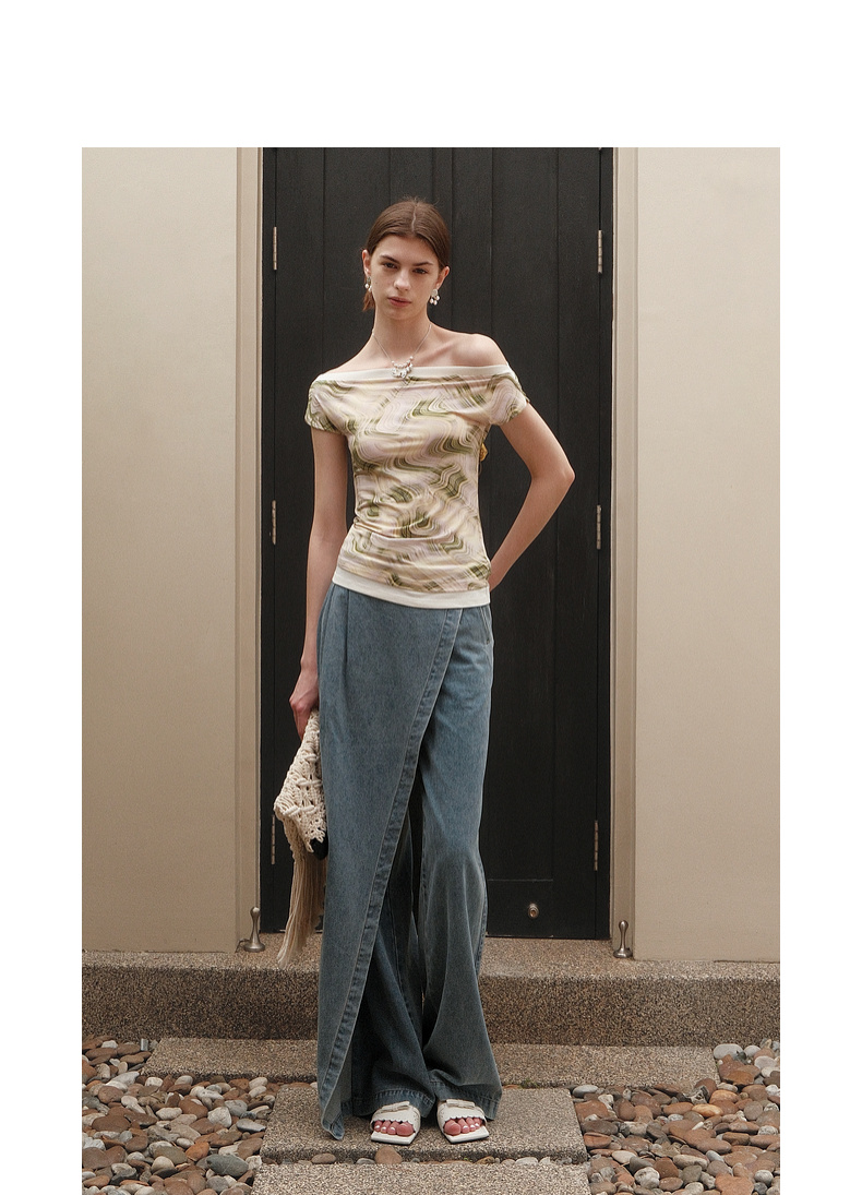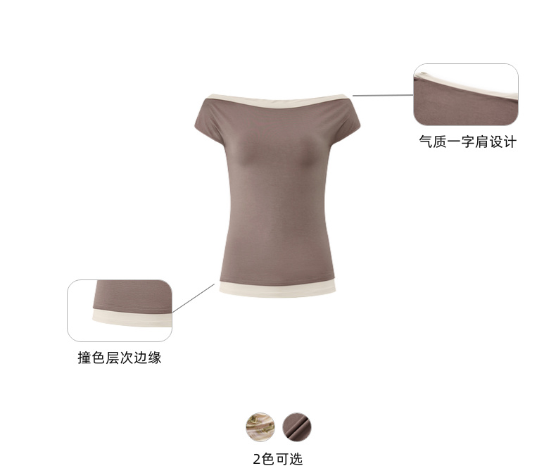 lost in echo2025夏季新款度假时尚纽扣一字肩透气短袖T恤上衣女