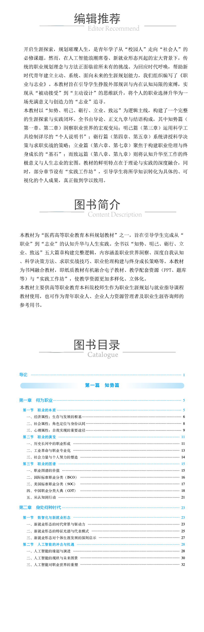 书名:职业与志业(医药高等职业教育本科规划教材)